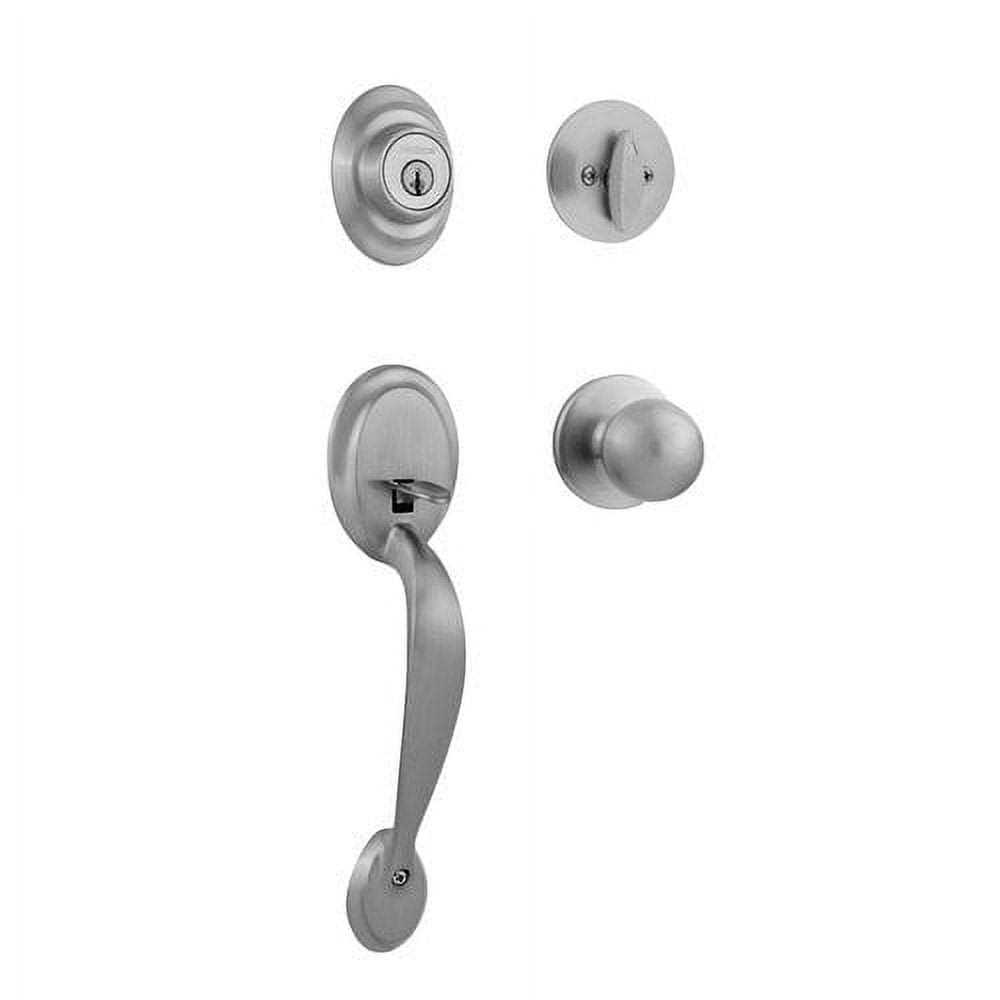 As the industry leader Kwikset has provided trusted security for over 70 years and has become synonymous with security peace of mind style and innovation. The clean lines of Dakota lend a casual yet stylish ambiance to your entry door and offers security with flair. The latch bolt is operated by the thumb piece on the outside and the grip on the inside. The deadbolt is operated by a key on the outside and a thumb turn on the inside.