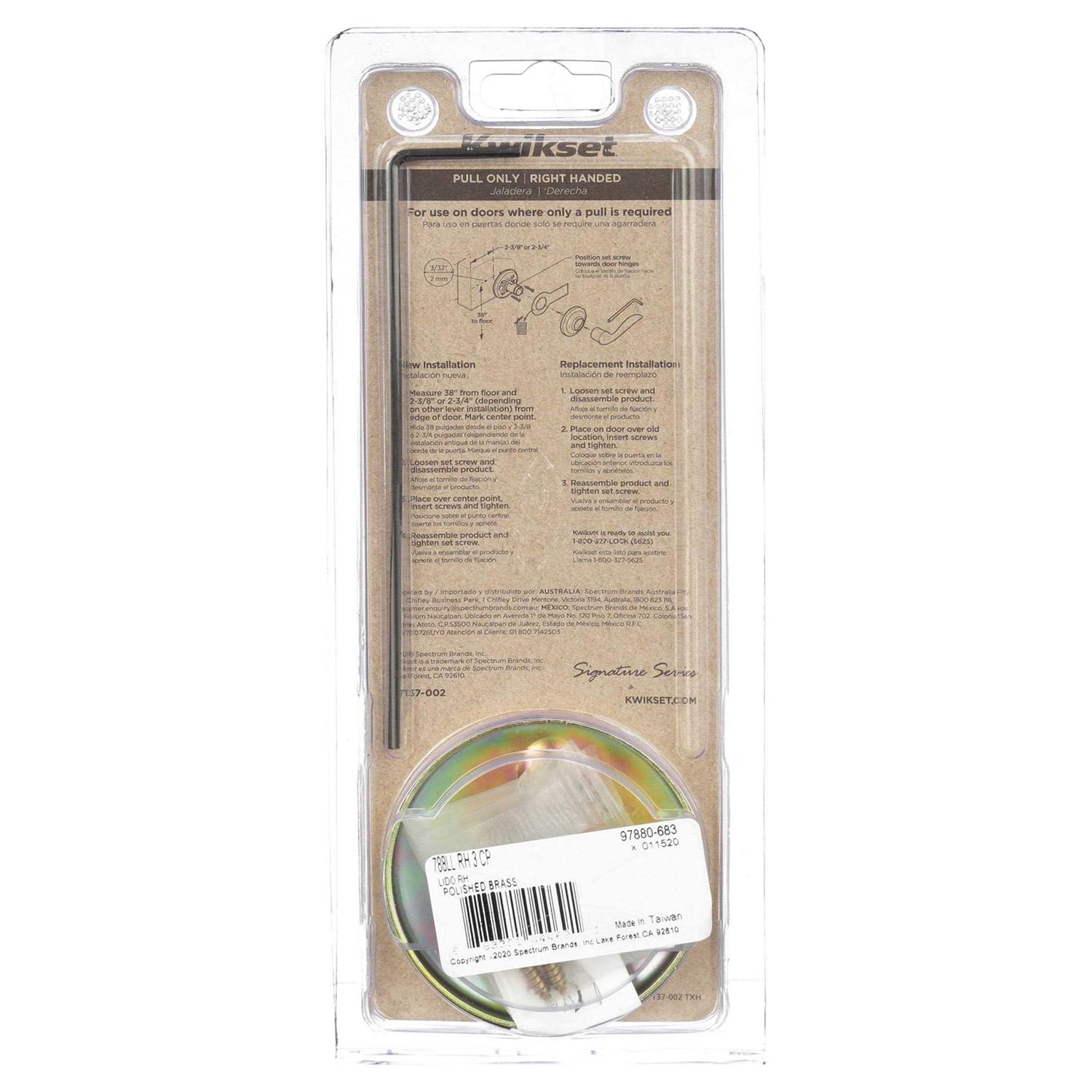 Step up to designer styles and superior security with Kwikset Signature Series products. The elegant scroll of the Lido complements a variety of homes and makes a stylish design statement. This half-dummy, or trim function, is surface mounted on doors where only a pull is required. The Polished Brass finish adds to the traditional look and feel of the product and makes a classic statement. Step up to designer styles and superior security with Kwikset Signature Series products. The elegant scroll of the Lido complements a variety of homes and makes a stylish design statement. The Polished Brass finish adds to the traditional look and feel of the product and makes a classic statement. This half-dummy, or trim function, is surface mounted on doors where only a pull is required.