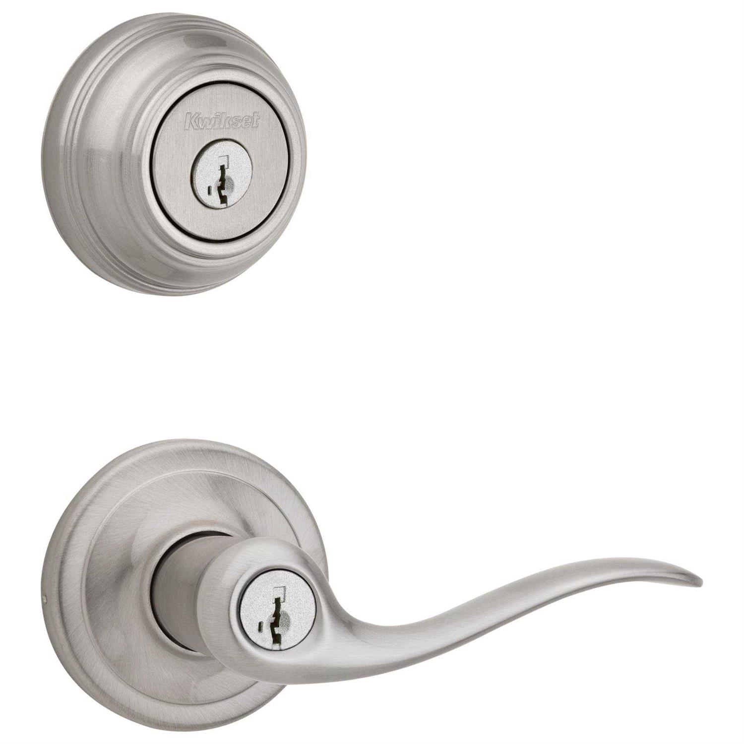 Kwikset Tustin Entry Lever & Deadbolt – Satin Nickel