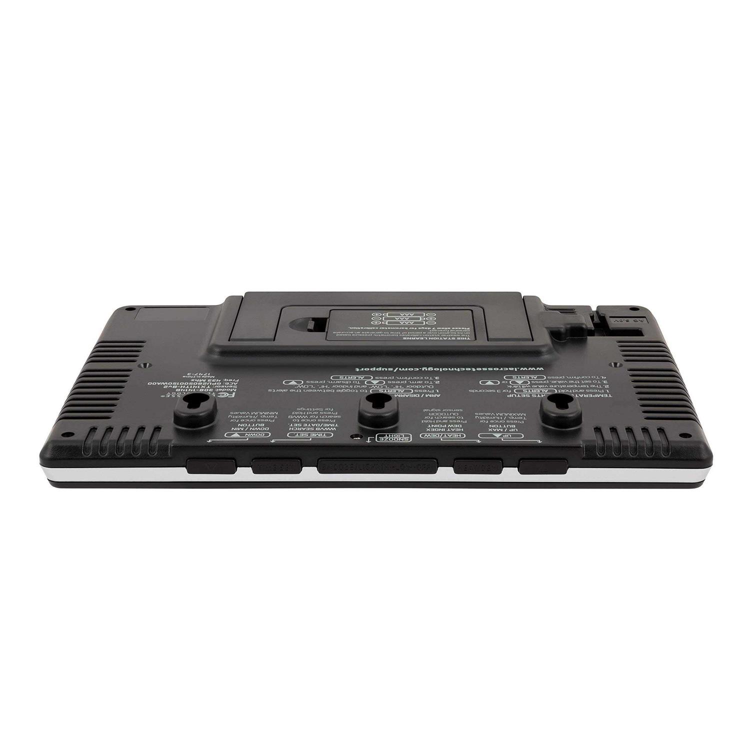- Full color LCD with weather icons: sunny, partly sunny, cloudy, rainy, stormy, snowy