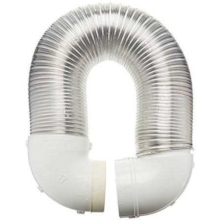Quick fit aluminum vent kit, used for clothes dryers, no clamps needed, easy to install, rubber gasket secures one elbow to the dryer exhaust outlet & the other elbow to the wall plate. Includes: 4″ x 8 flexible aluminum duct, 2 elbows & 1 wall plate. Item dimensions: 19.5″ l x 12.3″ w x 17.3″ h.