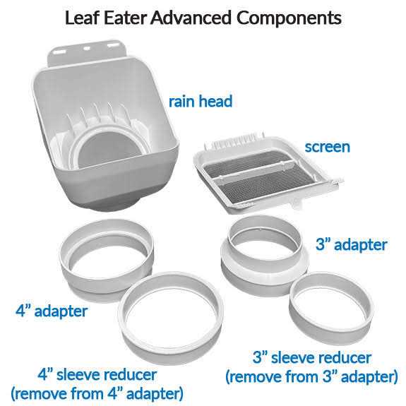 The Leaf Eater Advanced is the next generation Rain Head, featuring the new patented Clean Shield (single screen) technology and VH Pivot outlet. This model fits 3″ and 4″ round PVC pipe to the water collection tank.