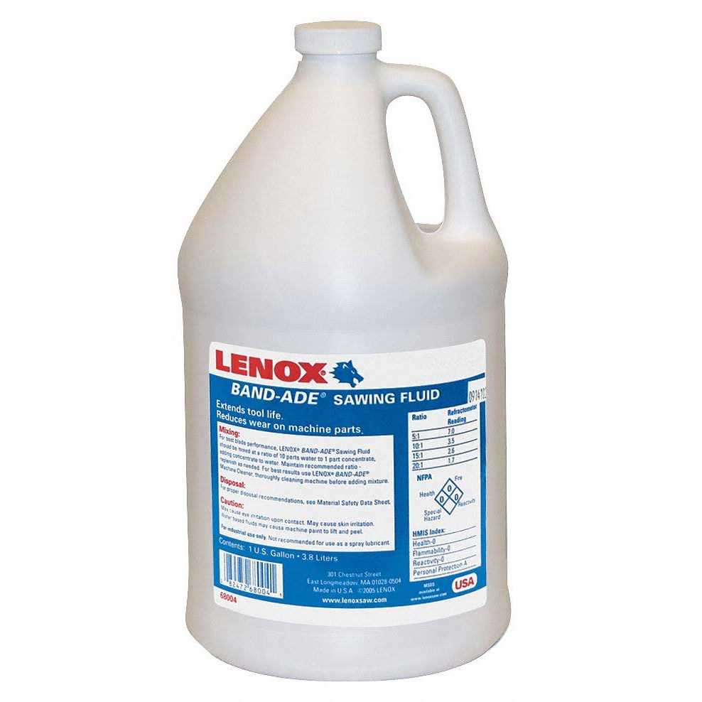 Lenox Band-Ade 1 gal Saw Fluid reduces machine wear and improves tool life of band saw blades. Fluid is designed for light to moderate-duty machine applications that involve both ferrous and non-ferrous metals. It’s water-soluble formulation helps to reduce frictional heat and improves cutting performance. It is biodegradable, safe for the operator to use and do not contain harmful chemicals like chlorine and sulphur.