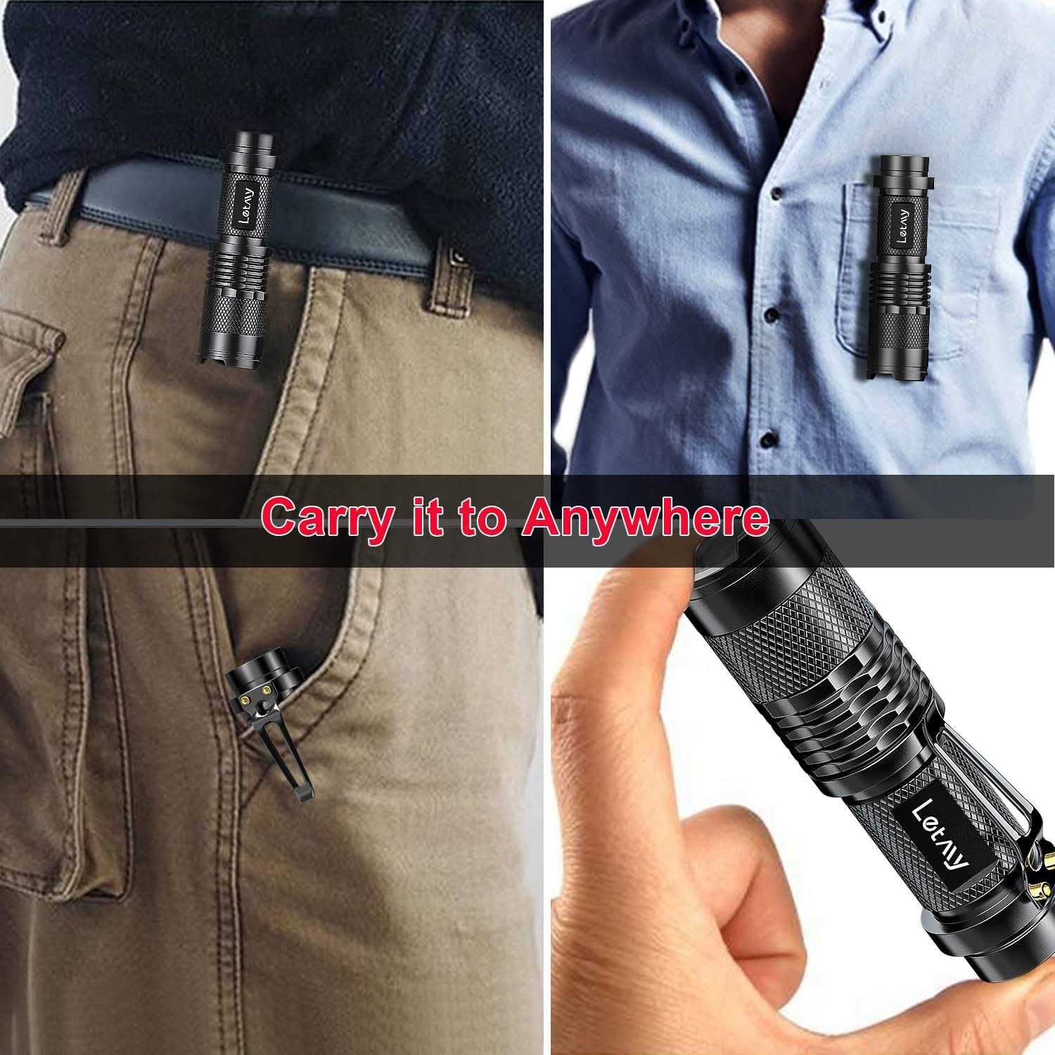 LETMY Tactical Flashlight, Super Bright LED Mini Flashlights with Belt Clip, Zoomable, 3 Modes, Waterproof – Best EDC Flashlight for Gift, Hiking, Cam