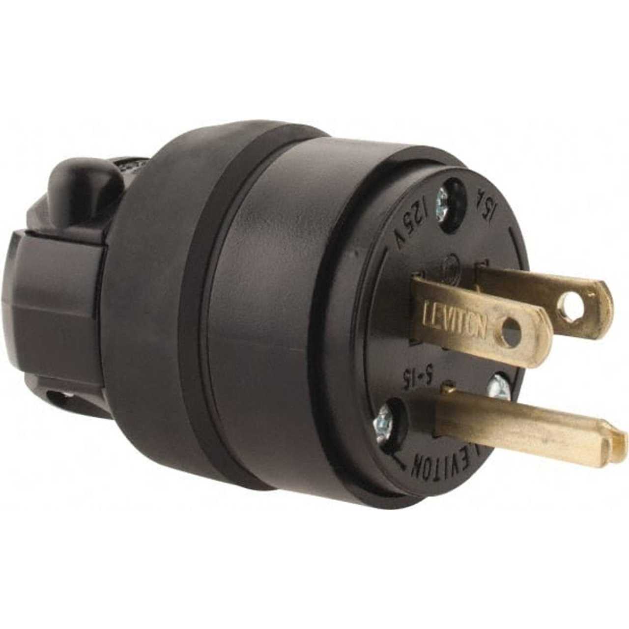 Leviton Grounding Plug, Black, 15 A
