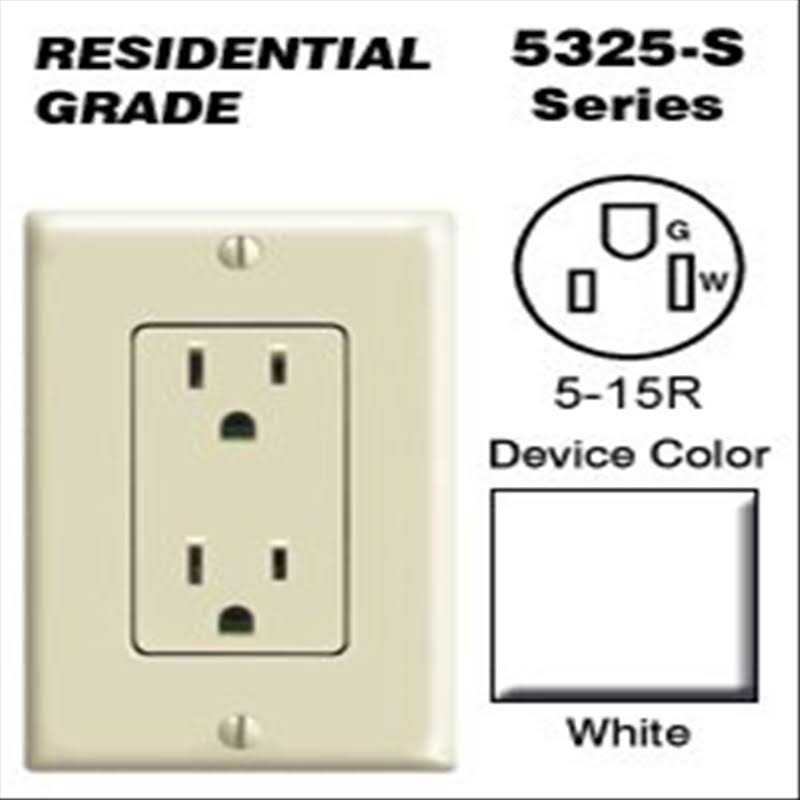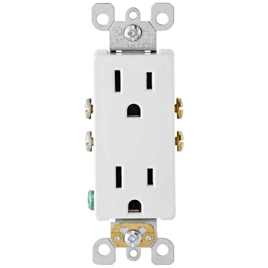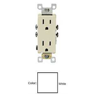 Leviton 5325-SW 15 Amp 125 Volt Decora Duplex Receptacle Residential Grade Self Grounding White