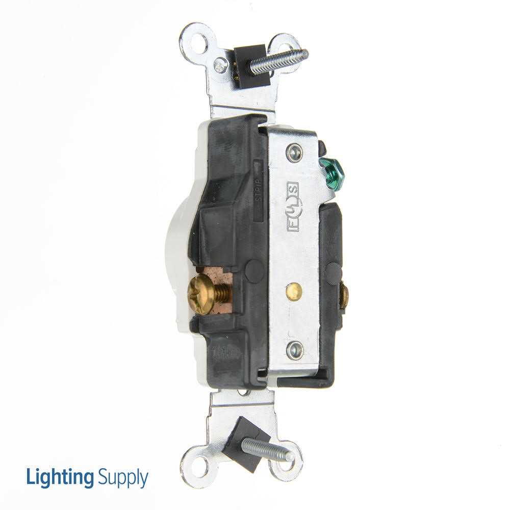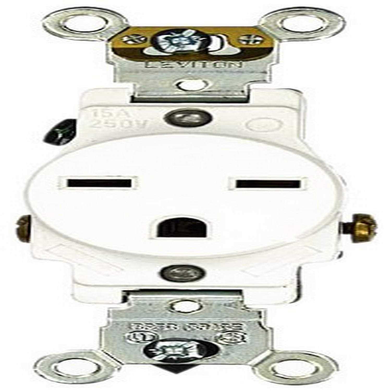 Leviton 2-Pole Heavy-duty straight blade receptacle is rated at 15-Amps, 250-Volts. The 3-Wire single receptacle offers side wired terminal connection for reliable connectivity. It has dimension of 1.31-Inch x 1.06-Inch x 4.06-Inch. Industrial/specification-grade receptacle in white color, features thermoplastic nylon construction for longer endurance. It accommodates conductor of size 14 – 10-AWG. Receptacle has phosphor bronze contact and galvanized steel strap. Strap mountable receptacle operates at temperature range of -40 to 60 deg C. It has maximum load capacity of 1-1/2 hp. Receptacle is UL listed, CSA/NOM certified, NEMA rated and meets ANSI standards, Federal specification.