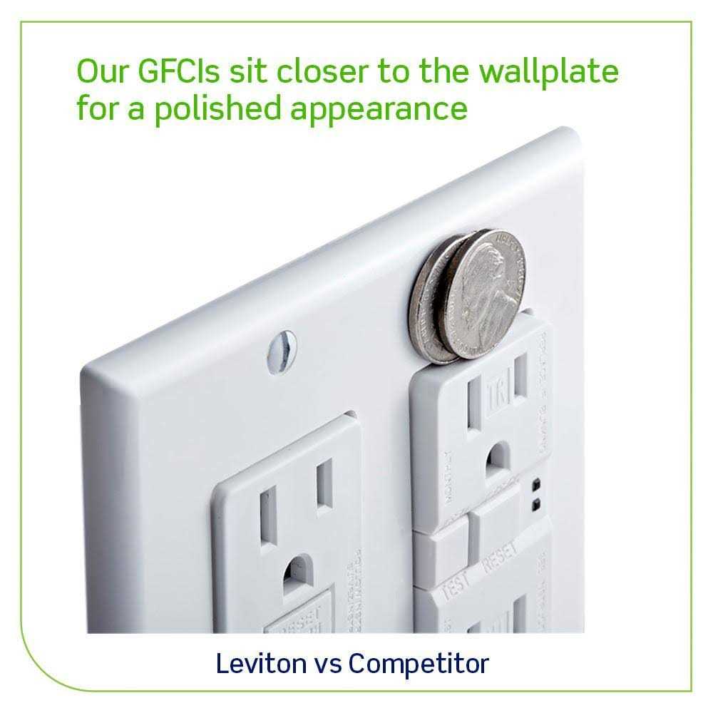 Peace of mind, all the time. The SmartlockPro Self-Test GFCI tests itself even if you forget. Designed to meet the latest UL standard for auto-monitoring (self-test) our complete line of self-test GFCI’s periodically conduct an automatic internal test to confirm that it can respond to a ground fault. With the slimmest profile on the market, the device allows for fast and easy installation, while Leviton’s patented reset lockout mechanism prevents reset of the GFCI if it is not wired or operating correctly. The SmartlockPro Self-Test GFCI is the smart choice in ground fault circuit interrupter protection. Color: White.