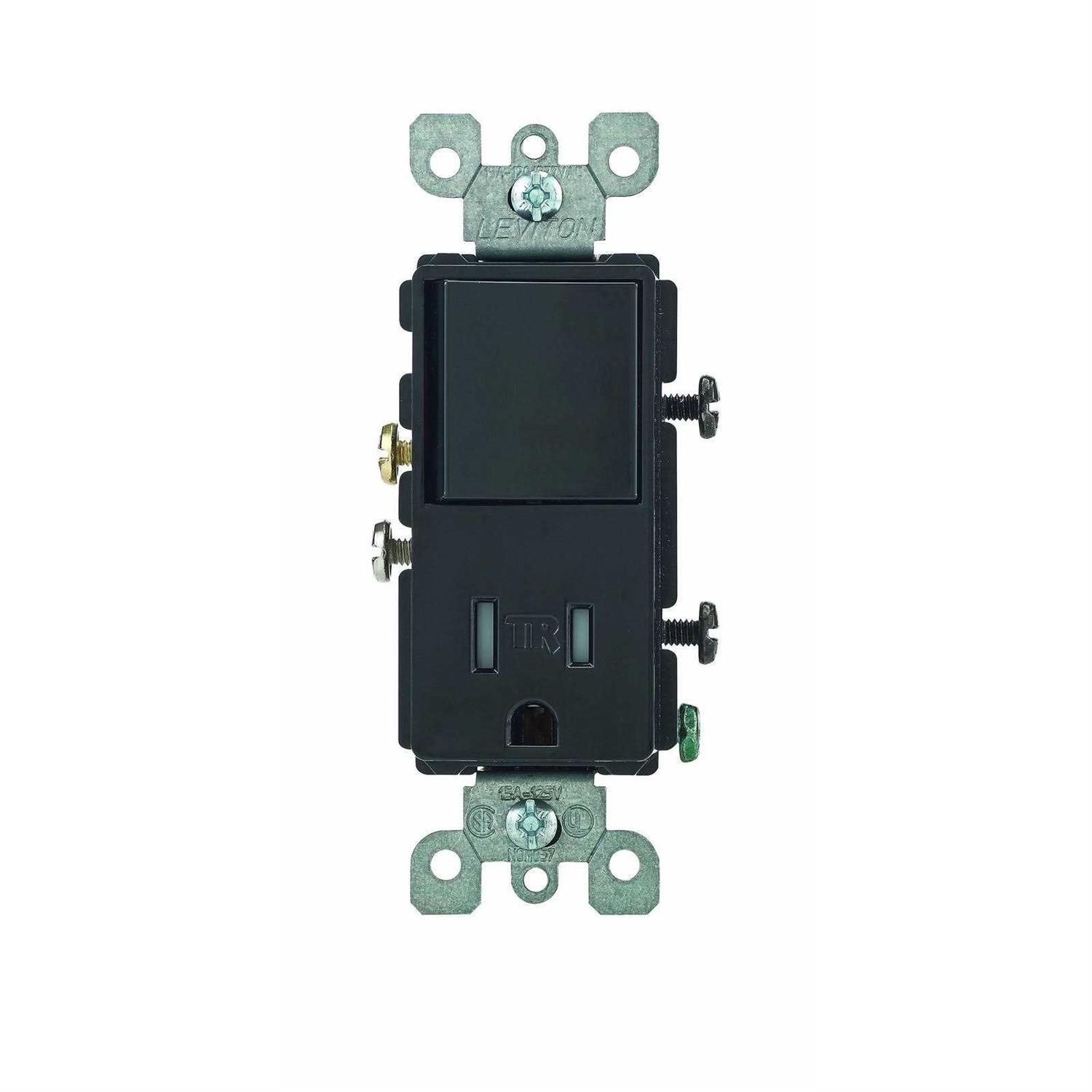 Leviton T5625-E Decora Combination Switch and Tamper-Resistant Receptacle Black