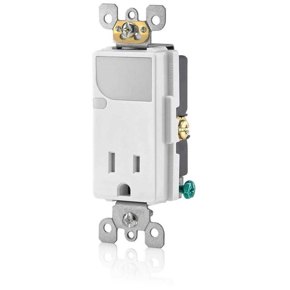 Leviton T6525-W Combination Decora Receptacle / LED Guide Light, 15A, 125V, White