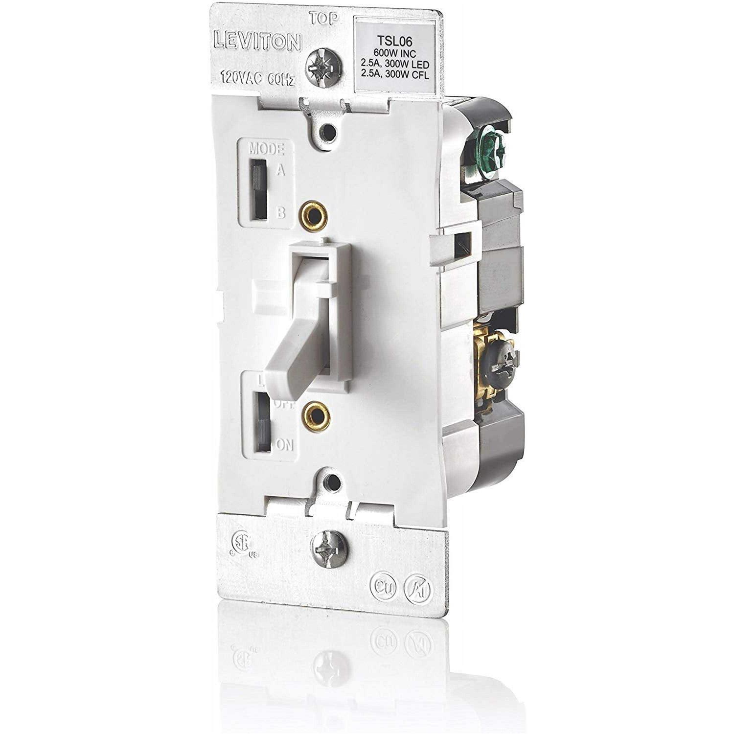Leviton TSL06-1LW Universal Dimmable LED CFL Incandescent and Halogen Toggle-Slide Dimmer, White