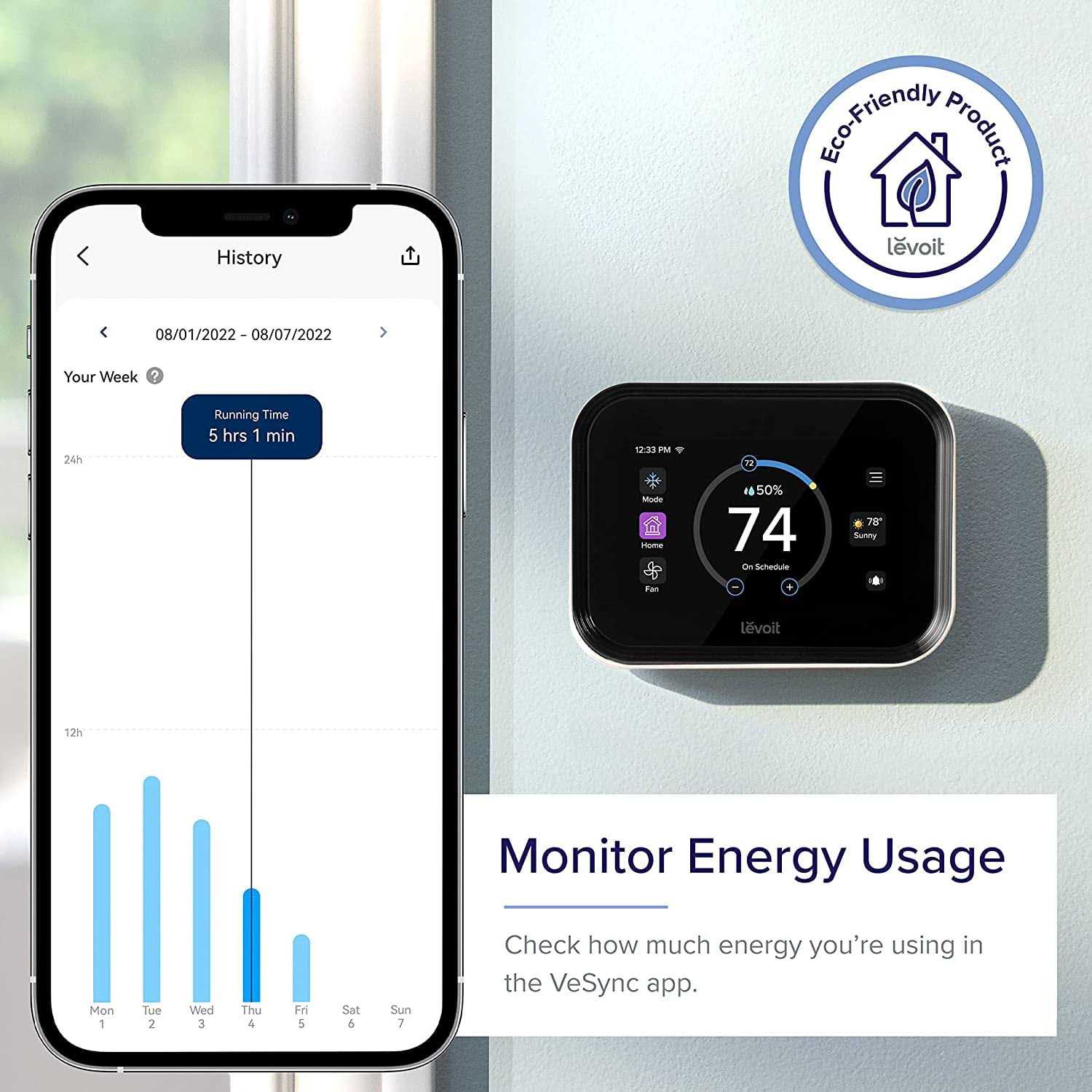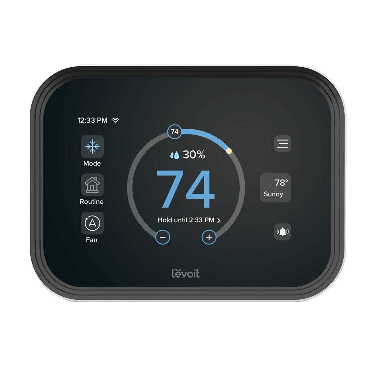 No matter where you go, always come home to comfort with the Levoit Aura Smart Thermostat. With the free VeSync app, you can monitor temperature and humidity levels, adjust settings, and create routines, all from your smartphone.