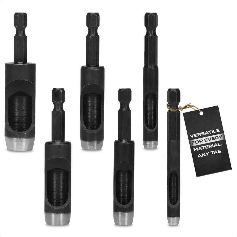 Description: Hollow punch set for use with a power drill or drill press Get precision holes in leather or heavy, thick fabrics with this amazing hollow punch set! The hollow punch set features hex shanks for a secure, non-slip fit in any chuck. These hollow punches are ideal for do-it-yourselfers, professional leatherworkers and a variety of other applications! Hex shanks for secure, non-slip fit in any chuck Precision holes in leather or heavy fabric Punches holes in leather, rubber, canvas, cardboard, plastic and other soft materials Specification: Diameter 3/16 in., 1/4 in., 5/16 in., 3/8 in., 7/16 in., 1/2 in. Number of pieces included 6 Product Length 1 in. Product Weight 0.36 lbs. Size(s) 2-3/4 in.