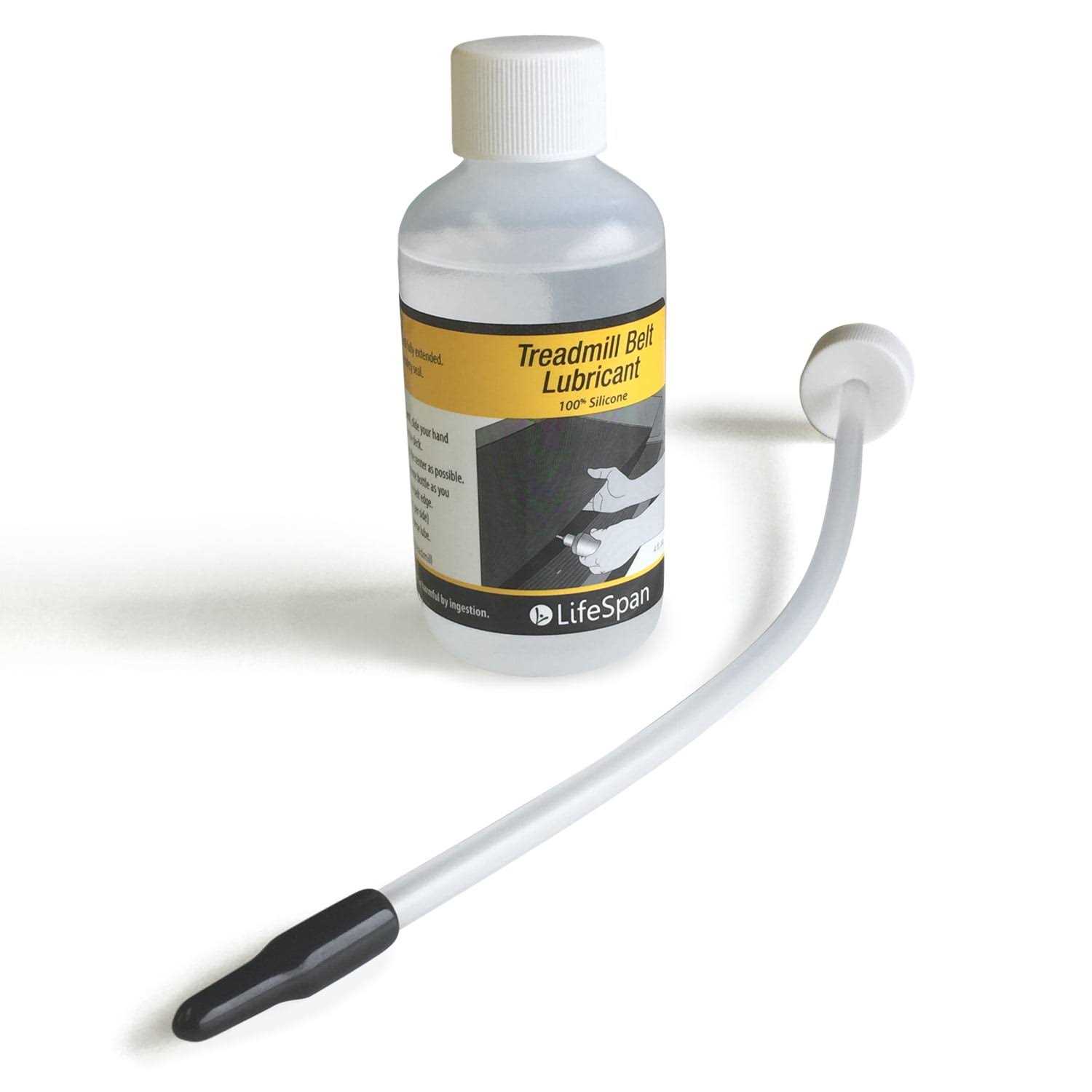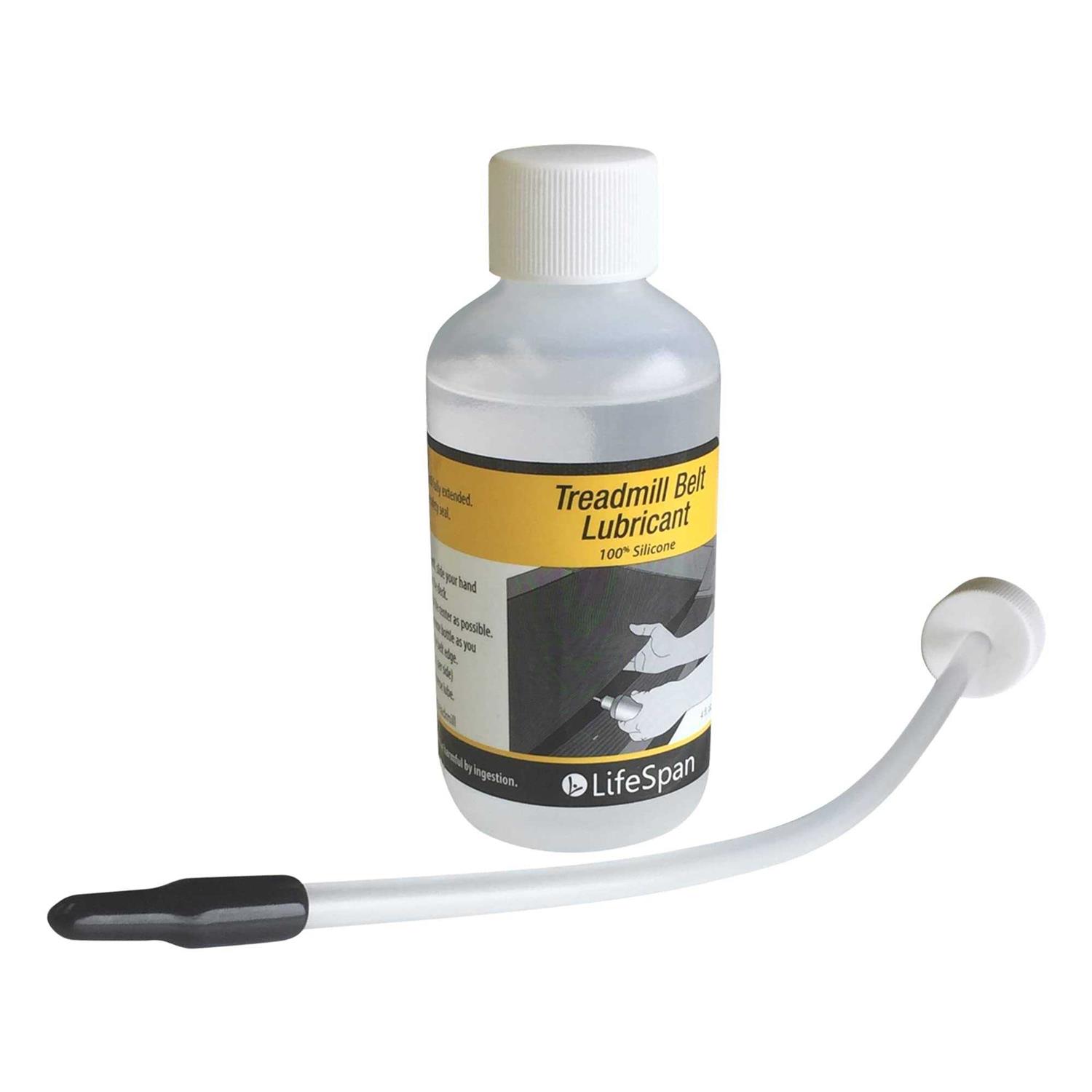 Info Keep your treadmill in optimal condition using LifeSpan’s 100% silicone treadmill lubricant. Proper lubrication on the underside of the treadmill belt is required to reduce heat and friction, prolonging the life of the motor, electronics, belt and deck. LifeSpan’s treadmill lubricant contains no harmful solvents and is colorless, odorless, non-toxic and nonflammable. Plus, the newly-updated bottle is now easier to use than ever. The new design eliminates potential spills on the treadmill belt or your flooring. This 4-ounce bottle of lubricant for treadmills is good for four applications or 3-4 months of normal treadmill maintenance. How to Lubricate Your Treadmill Belt Power off your treadmill and unplug it from the power outlet. Starting toward the front (motor end) of your treadmill, slide your hand underneath the belt and create separation between the deck and belt. Slide the lube tube as close to the center of the deck as possible. While gently applying controlled pressure to the squeeze bottle, slowly move the applicator from the center towards the edge of the treadmill belt. Apply approximately ½ oz (1/8 of bottle) to the underside of belt. Repeat steps 1-3 on the opposite side of the belt. Plug in treadmill, power it on, and use for 3-5 minutes to disperse treadmill lubricant evenly. Info Video Additional Info Keep Your Treadmill in Optimal Condition LifeSpan’s treadmill lubricant contains no harmful solvents and is colorless, odorless, non-toxic and nonflammable. Plus, the newly-updated bottle is now easier to use than ever. The new design eliminates potential spills on the treadmill belt or your flooring. This 4-ounce bottle of lubricant for treadmills is good for four applications or one year of normal treadmill maintenance.