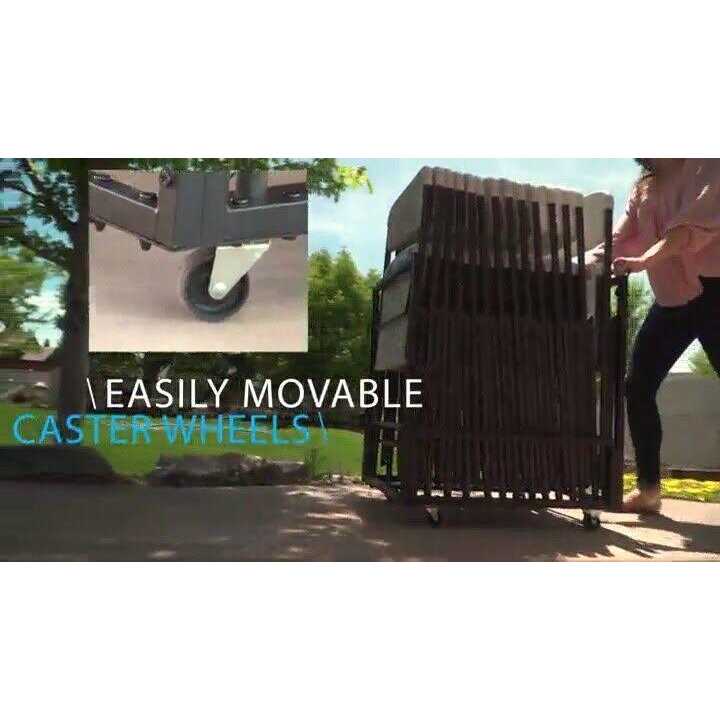 Holds up to 8 Lifetime Commercial Folding Chairs or 16 Lifetime Essential Folding Chairs. Easy to steer and maneuver; Moves easily on caster wheels. Designed to Roll Through a Standard Doorway. Keeps chairs organized and out of the way; Perfect for home or small business use. It is constructed of heavy-duty powder-coated steel black with 4 smooth caster wheels 2 swivel.