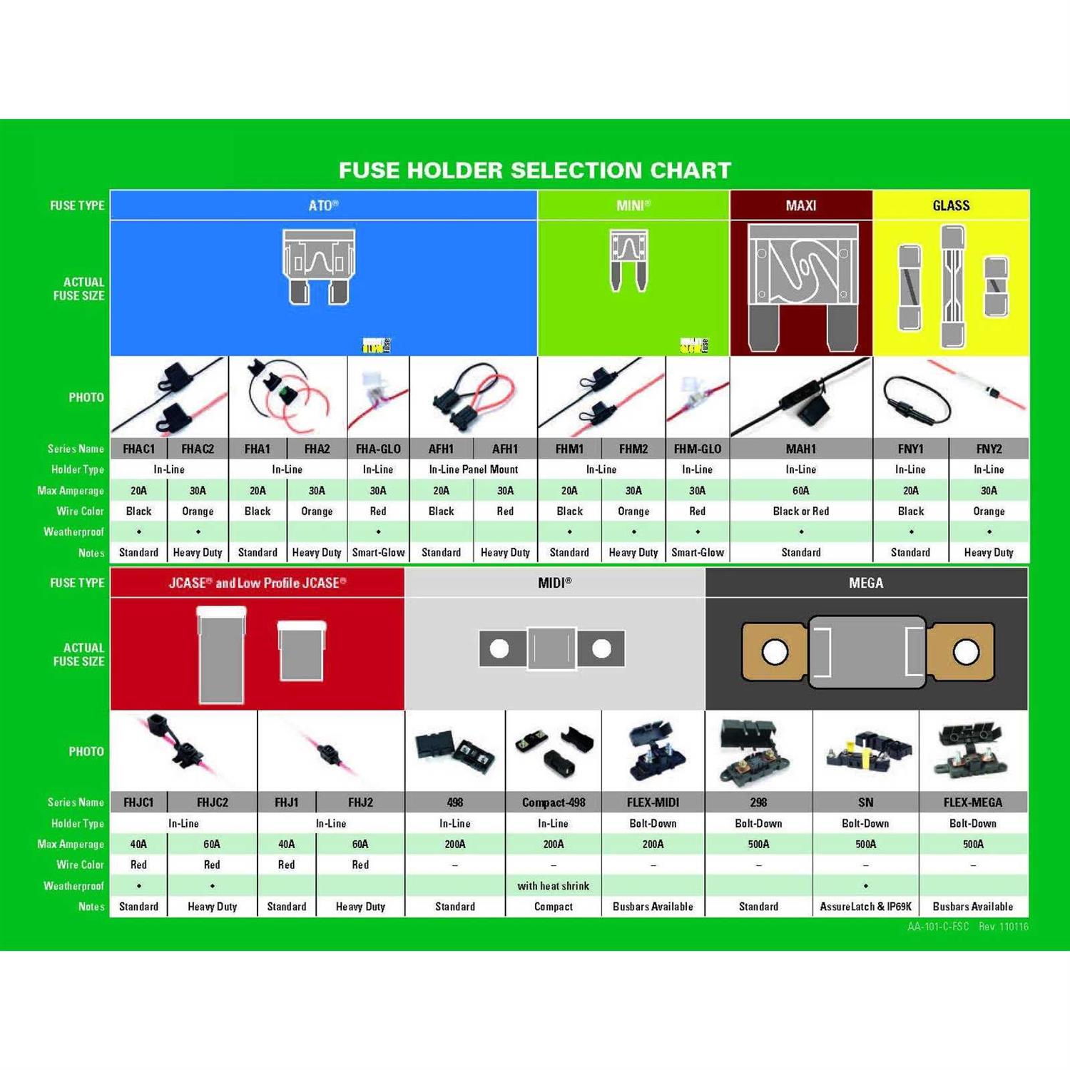 - Commonly used for battery and alternator connections and other heavy gauge cables requiring ultra high current protection