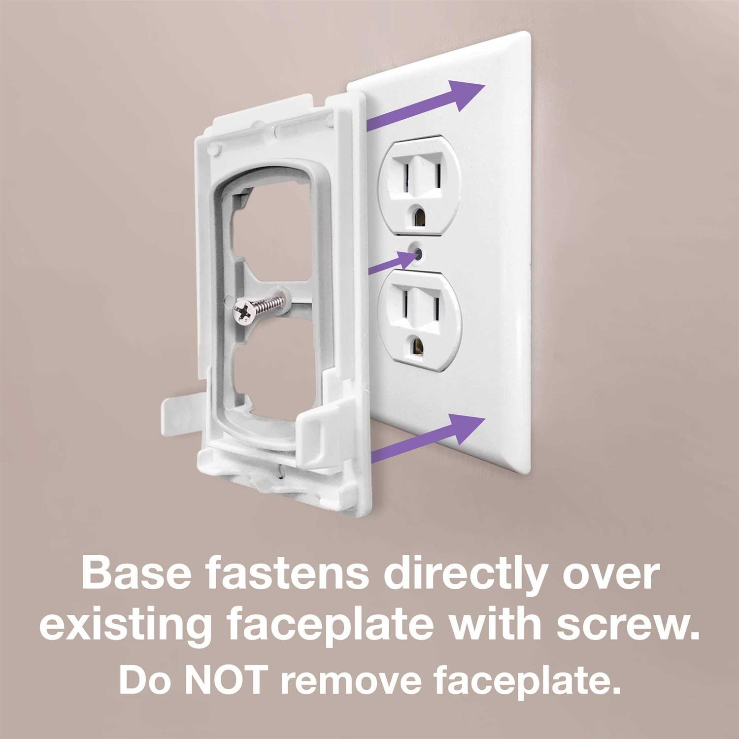 - EASY TO INSTALL: Simply screw the backing plate right over the face plate. For standard outlets use the adaptor to mount the base to the outlet.