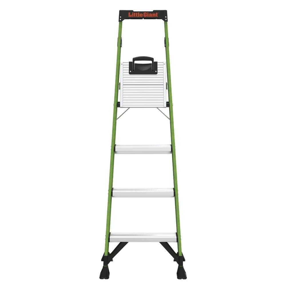 The MightyLite 2.0 from Little Giant Ladder Systems is a sturdy, easy-to-use stepladder that is built to last. This lightweight ladder was engineered with a slim storage profile, while still supporting an impressive weight capacity. Its a get stuff done ladder built for pros. Comfortable Standing Platform Extra-wide 3 steps with treads prevent slipping and foot fatigue. At 165 square inches, the comfortable standing platform creates a sturdy workspace that fully supports the feet. Work in comfort for extended periods. Innovative Top Cap The MightyLites innovative top cap features hooks, port holes, slots and grooves to keep your materials within reach while working. Non-Conductive Fiberglass The MightyLite 2.0 is made with strong, lightweight and non-conductive fiberglass. Little Giants iconic Hi-Viz Green fiberglass promotes safety for both the climber and passersby, as its vibrant color decreases the likelihood of accidental ladder bumping. And with the MightyLite 2.0s improved design, less strain is put on the fiberglass, making it a more long-lasting and durable ladder. Duty Rating The MightyLite 2.0 from Little Giant Ladder Systems meets or exceeds all OSHA and ANSI standards and is rated Type IA to hold 300 lbs.