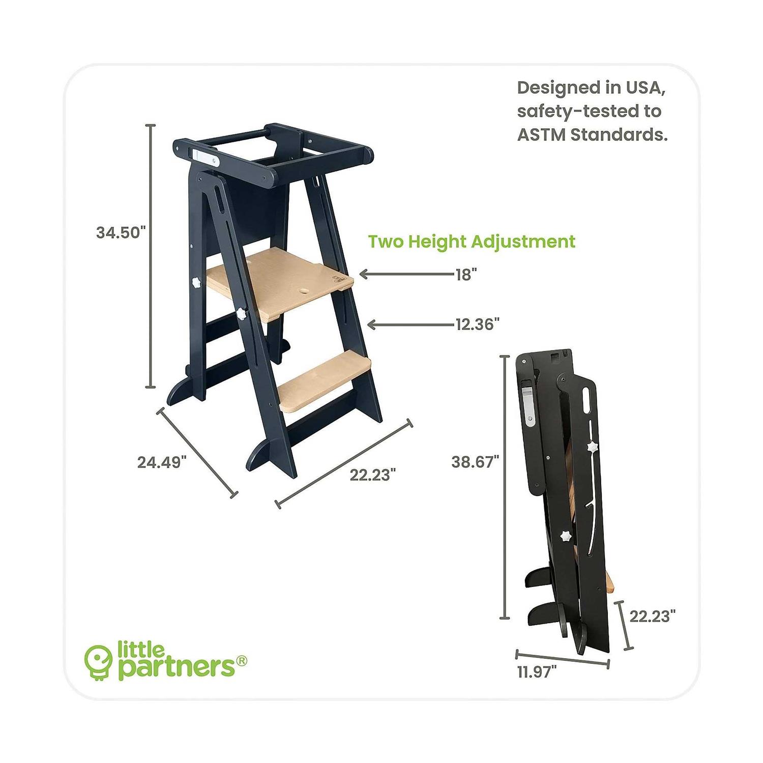Little Partners Learn ‘n Fold Learning Tower Toddler Step Stool in Charcoal w/Natural