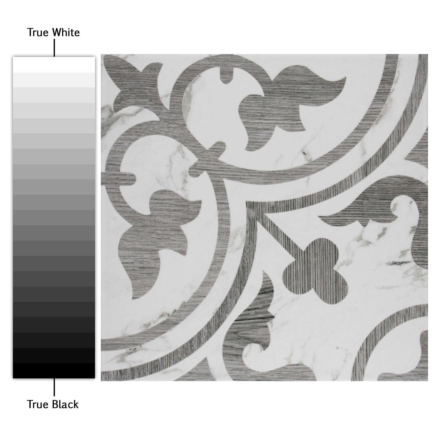 Blending two distinct textures. This porcelain tile features a large floral old-world design in a soft wood-look pattern, offering stunningly realistic woodgrains and variable fades to the decoration. The contrasting design is complemented with stormy veining which varies for added authenticity. This porcelain floor and wall tile feature a gentle relief texture, lending added warmth and natural realism to surfaces. Available in 24 different print variations that are randomly scattered throughout each case, this tile offers a one-of-a-kind look. Its impervious, durable, and frost-resistant features make this an ideal choice for indoor and outdoor installation locations including backsplashes, bathroom floors and walls, showers, kitchen floors, and walls, fireplaces, and patios.