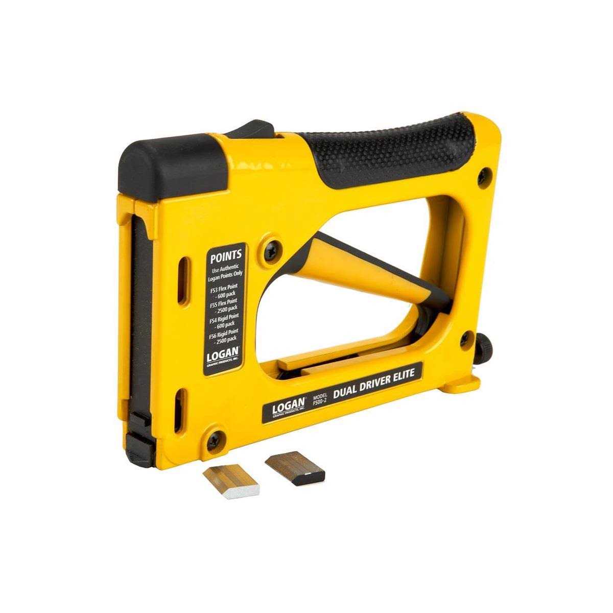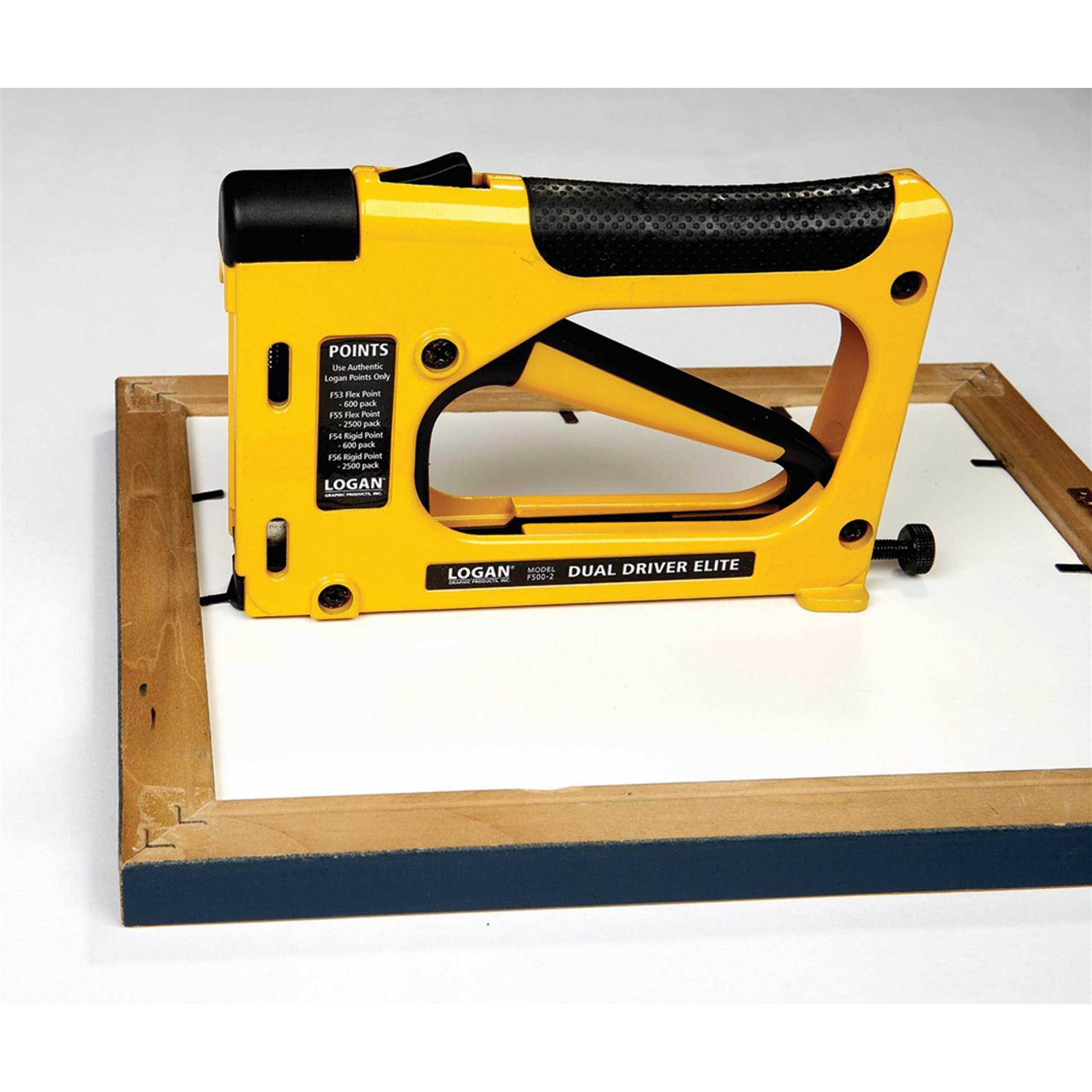 The Dual Point Drive insert gun is unique in that it can use stacks of either rigid or flexible points. Use this driver to drive points into either soft or hard wood moulding to secure artwork backing board and glass into the frame. All metal construction. Includes 100 free points 50 rigid and 50 flexible.Rigid points are best suited for permanent installations. Once installed tools are required to straighten a rigid point.Flexible points can be bent by hand making them ideal for removing and/or replacing the frame contents without the use of tools.
