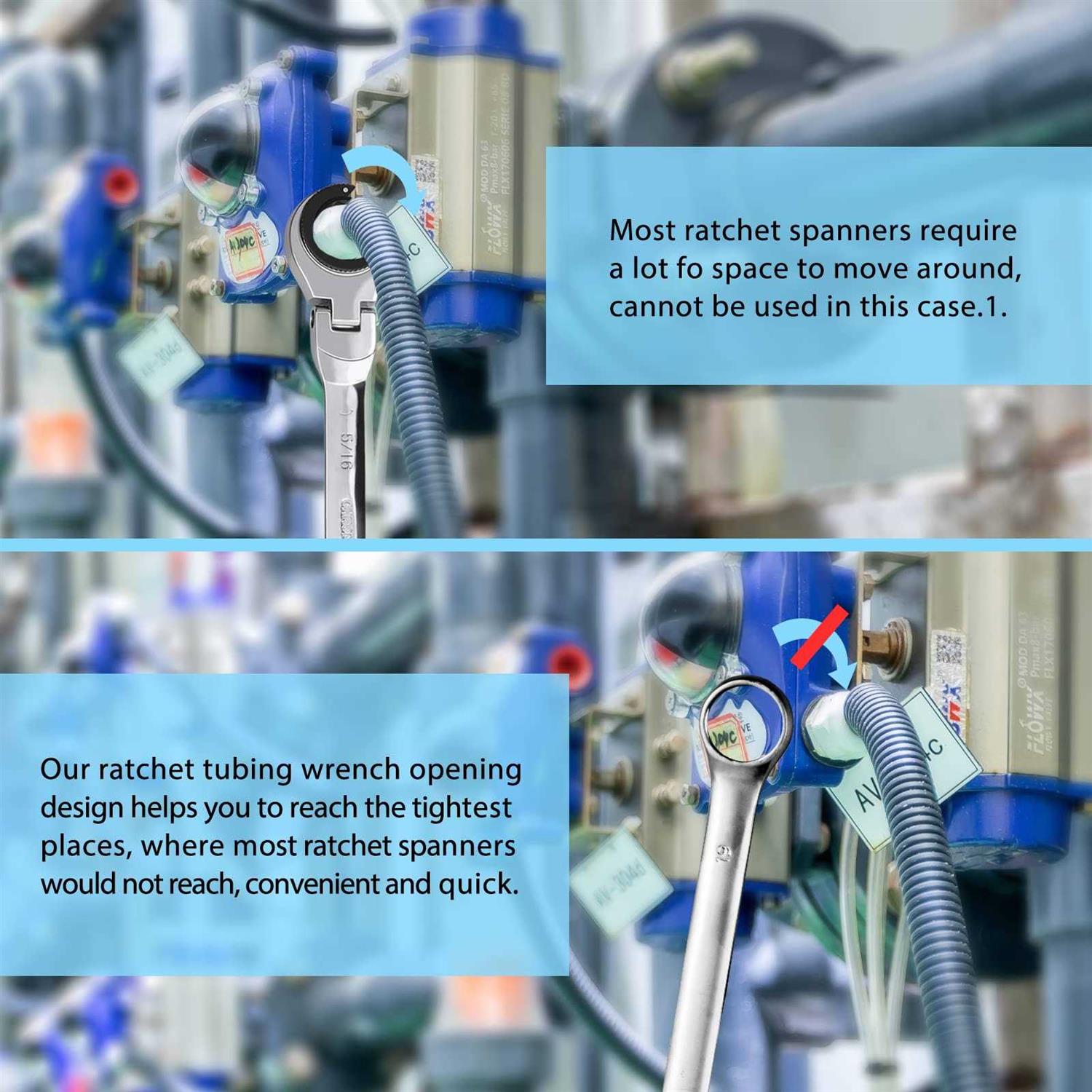 LOSCHEN】1PCS 5/16 Open Flex-Head Ratcheting Wrench, SAE Ratcheting Spanner with 72 Teeth, Chrome Vanadium Steel Tubing Ratchet Spanner