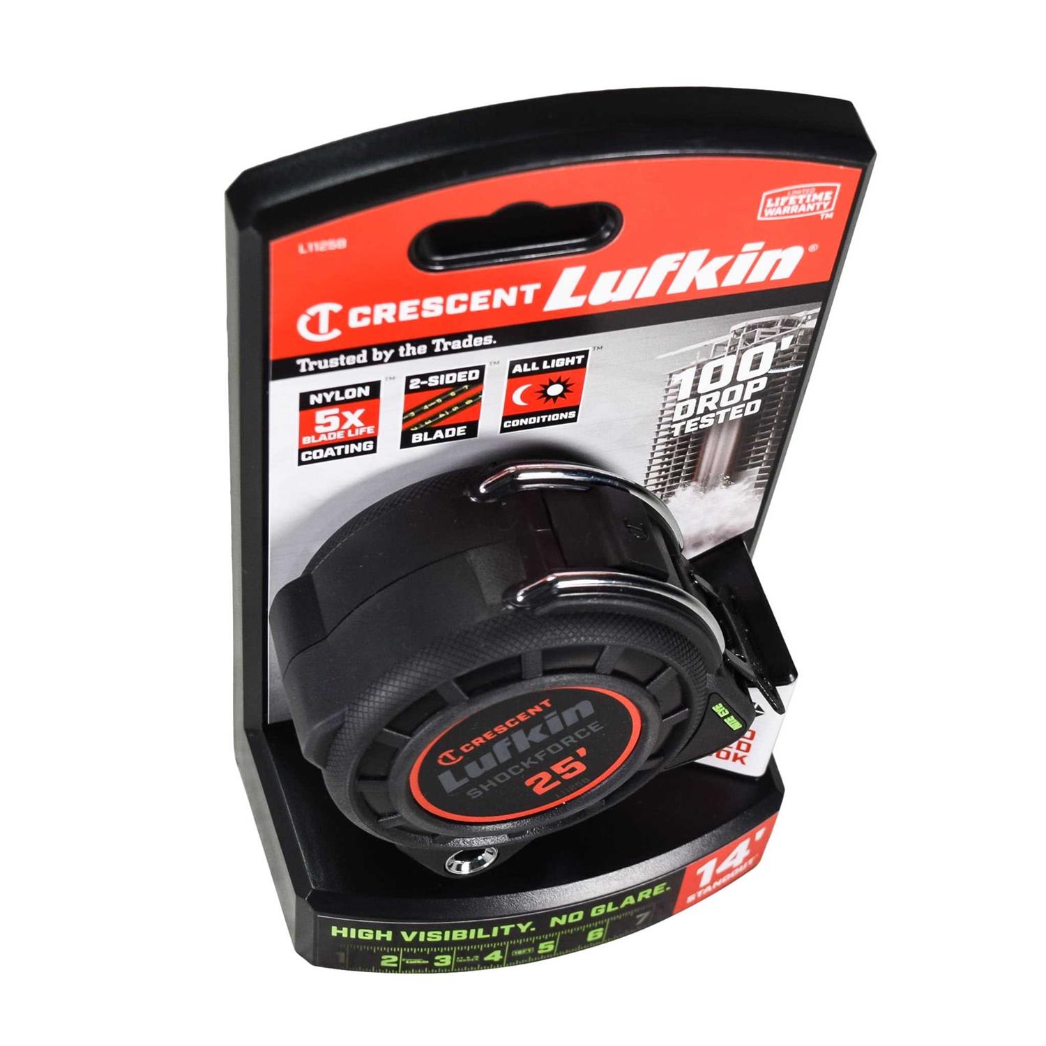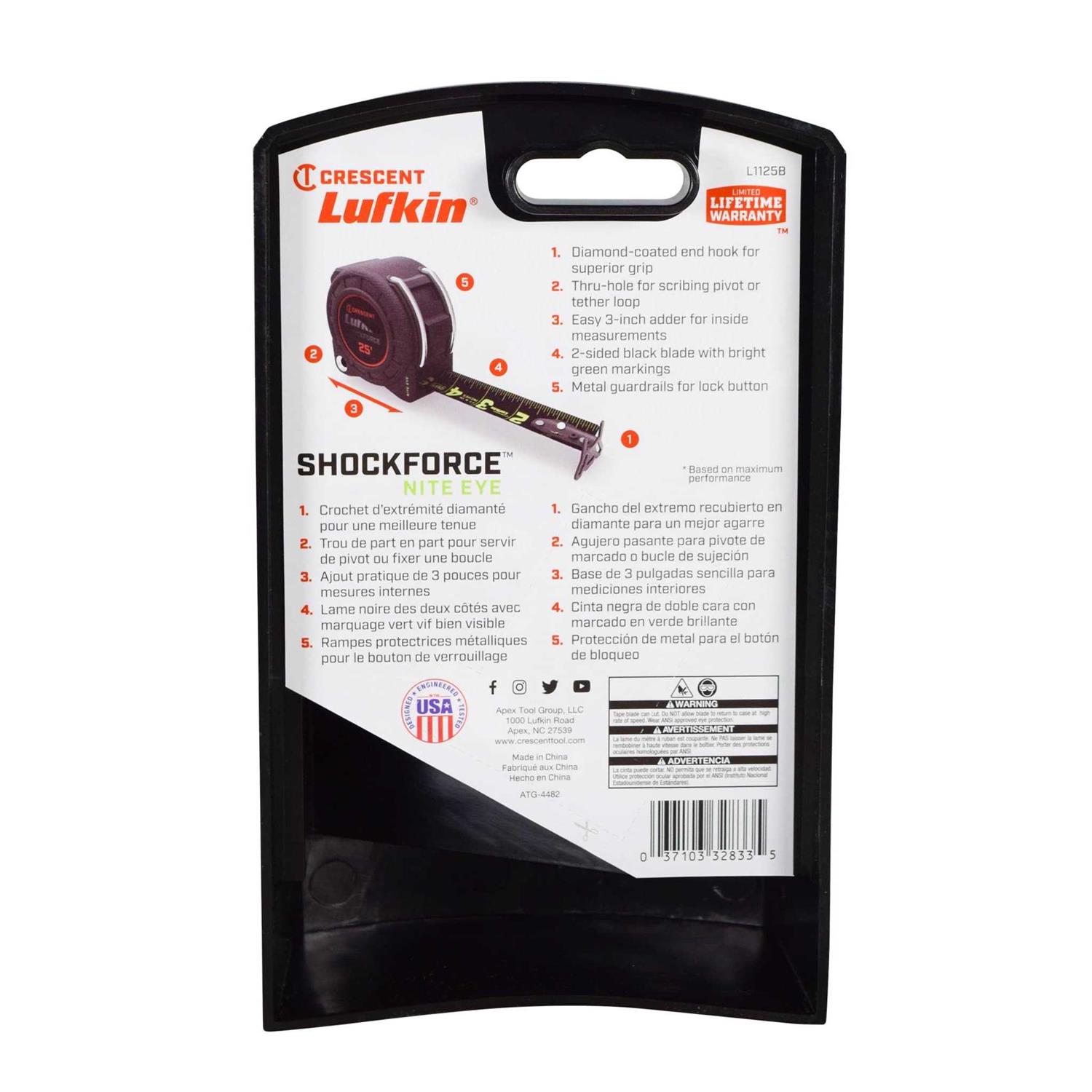 Lufkin L1125B Shockforce Nite Eye Tape Measure, 25 ft. x 1-3/16 in