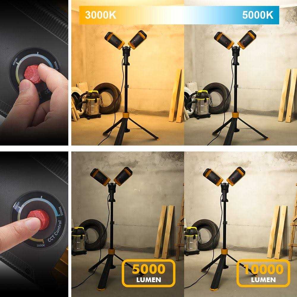 【Upgraded】LUTEC 6290Max 11000 Lumen 92W Dimmable LED Work Light with Telescoping Tripod, Adjustable Color Temperature Dual-Head Work Light with Stand