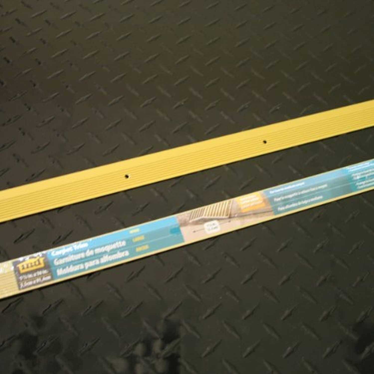 The 1-3/8″” x 36″ Satin Brass Fluted Carpet Trim easily covers a seam or gap between two flooring surfaces of unequal height. Carpet Trim prevents carpet edges from fraying, vinyl floor seams from curling and creates a smooth transition between different flooring surfaces. Aluminum trim is easily secured to wood and concrete floors with provided Screw Nails. For installation on concrete floors use Wooden Pegs (sold separately).