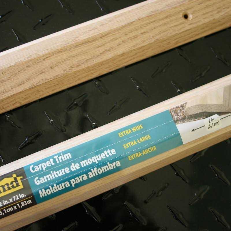 The Unfinished 5.1cm x 180cm Hardwood Carpet Trim easily covers a seam or gap between two flooring surfaces of unequal height. Hardwood Carpet Trim prevents carpet edges from fraying, vinyl floor seams from curling and creates a smooth transition between different flooring surfaces. Hardwood trim is easily secured to wood and concrete floors with provided screws. For installation on concrete floors use Wooden Pegs (sold separately). The Unfinished 5.1cm x 180cm Hardwood Carpet Trim easily covers a seam or gap between two flooring surfaces of unequal height. Hardwood Carpet Trim prevents carpet edges from fraying, vinyl floor seams from curling and creates a smooth transition between different flooring surfaces. Hardwood trim is easily secured to wood and concrete floors with provided screws. For installation on concrete floors use Wooden Pegs (sold separately).