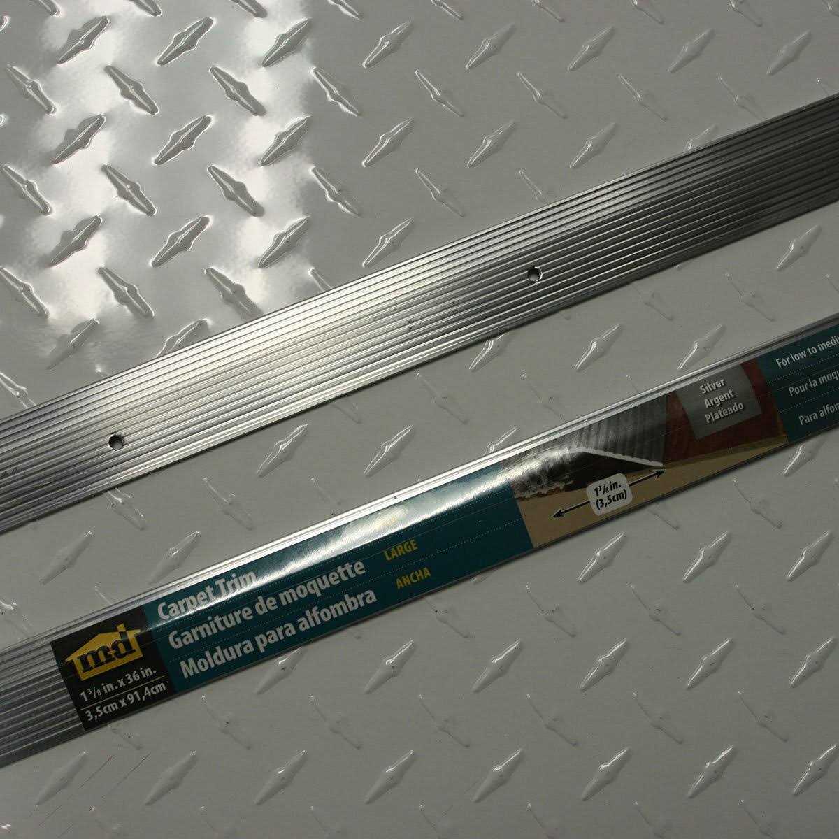 The 1-3/8-Inch x 36-Inch Fluted Silver Carpet Trim easily covers a seam or gap between two flooring surfaces of unequal height. Carpet Trim prevents carpet edges from fraying, vinyl floor seams from curling and creates a smooth transition between different flooring surfaces. Aluminum trim is easily secured to wood and concrete floors with provided Screw Nails. For installation on concrete floors use Wooden Pegs (sold separately).
