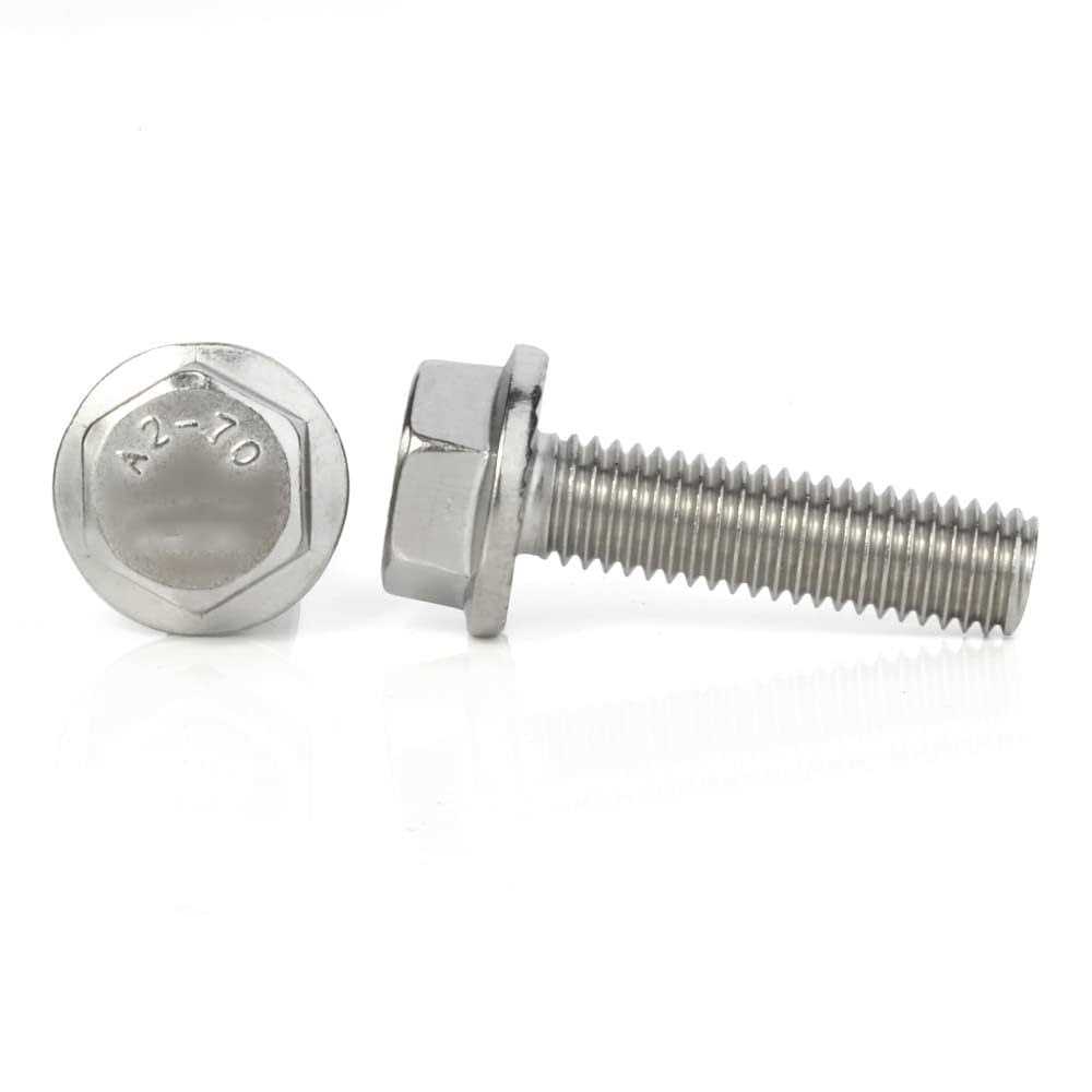 High quality Grade A2-70 Stainless Steel 18-8 (304) provides strength and offers good corrosion resistance in many environments. Flange bolts have a flange on the bottom of the head that distributes the load like a washer. Thread Diameter 10 mm, Thread Size 1.5 mm (M10), Screw Length 40 mm. Package Included: 10 PCS Flanged Bolts. Flanged Bolts are great to have around for use in wood and wet environments. Product Specification /b br Hex Tap Bolts, also known as fully-threaded hex cap screws, or machine bolts. Hex bolts are one of the most common fasteners and can be used in many applications. Buy with confidence.