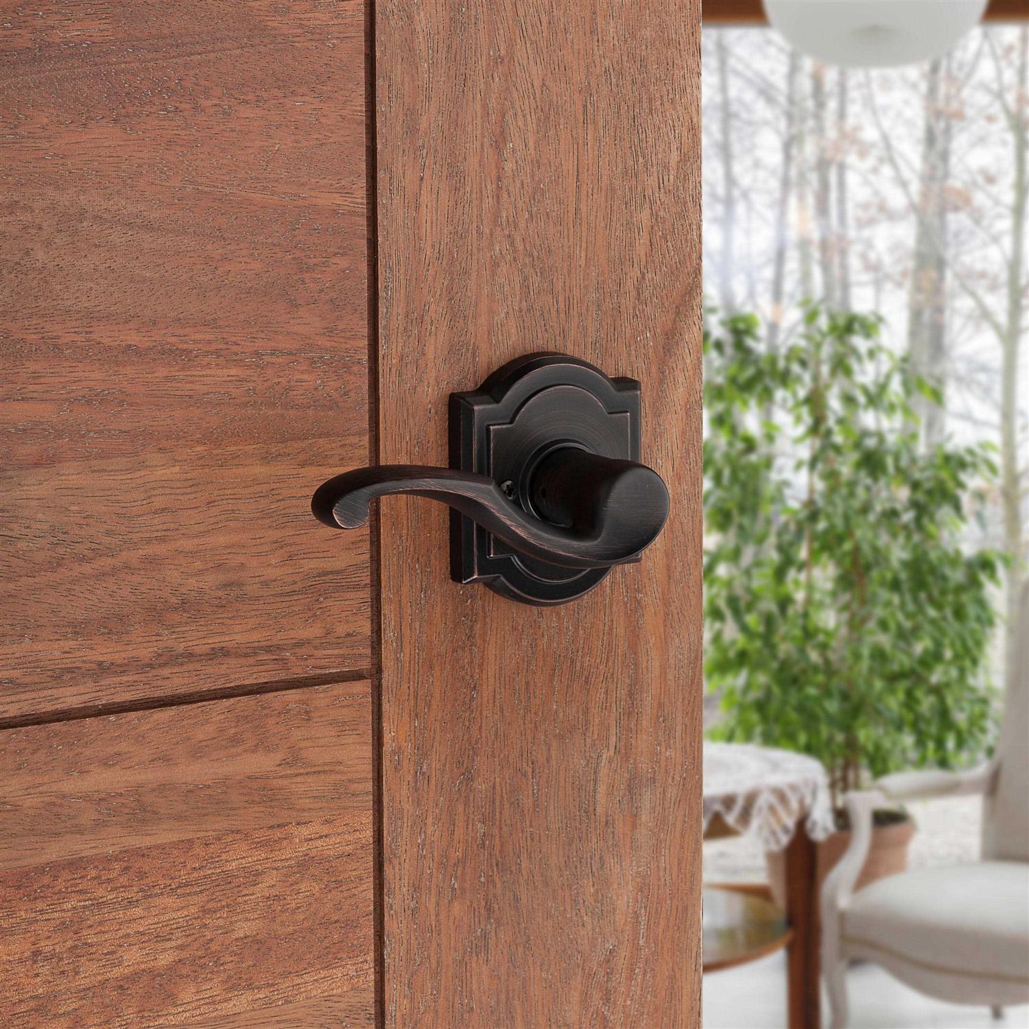 - Rustic lever design shown in a venetian bronze finish
