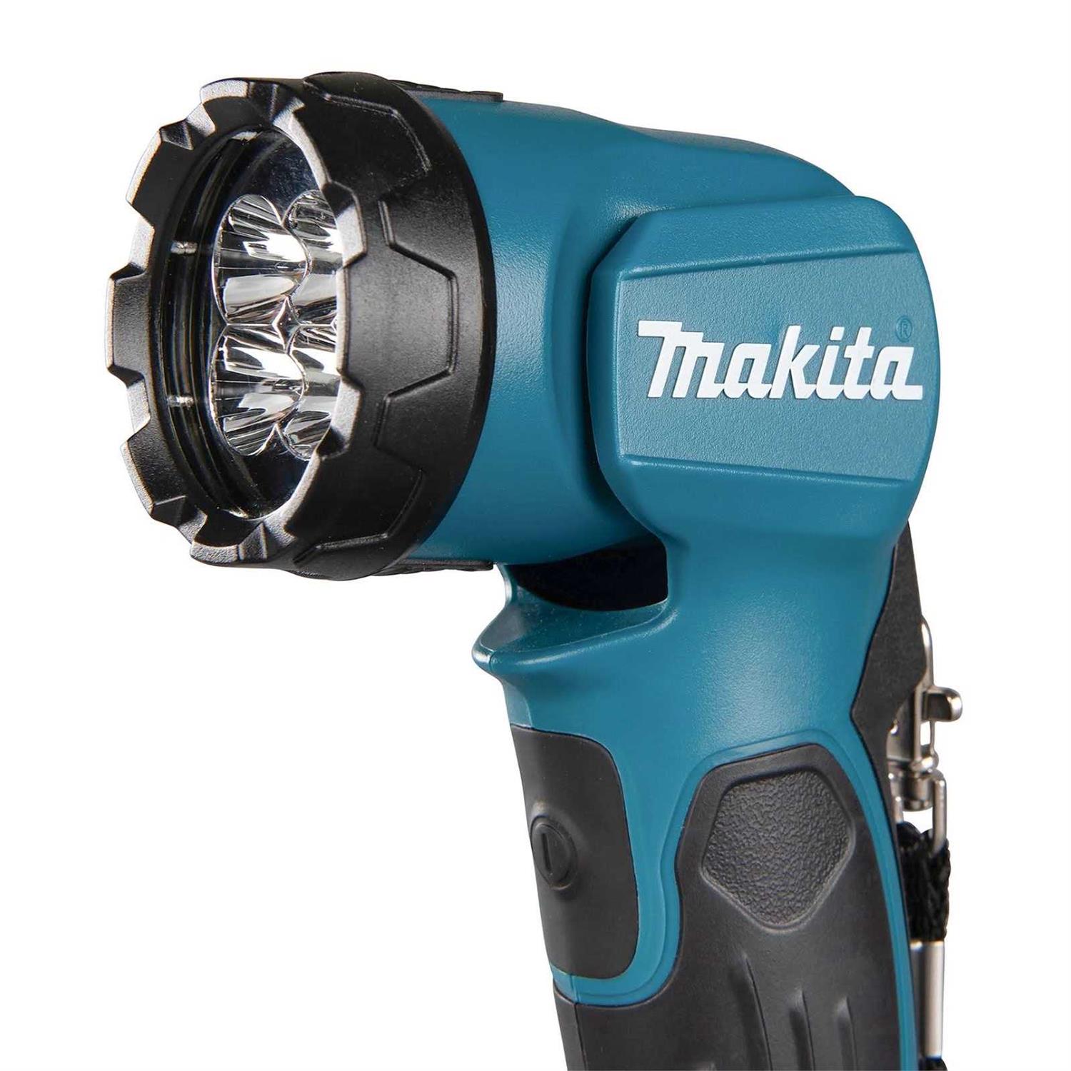 The Makita 18V LXT LED Flashlight (DML815) delivers bright illumination, versatility, and convenience. The high-luminance 4 LED flashlight provides 160 lumens. The fast-charging Makita 18V LXT Lithium-Ion Battery delivers up to 23 hrs. of continuous illumination on a single charge (when using the 18V LXT Lithium-Ion 5 Ah battery, sold separately). The 12-position aluminum pivoting head provides added versatility, with a durable design engineered for job site conditions. A metal hang-hook provides added convenience. The flashlight has a slim, compact design at 10 – 3/4 in. L and weighs only 1.95 lbs. (with 18V LXT battery, sold separately). It’s part of Makita’s expanding 18V LXT system, the world’s largest cordless tool system powered by 18V lithium-ion batteries. Makita 18V LXT Lithium-Ion Batteries have the fastest charge times in their categories, so they spend more time working and less time sitting on the charger.