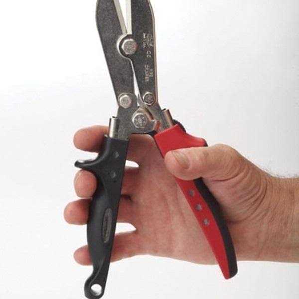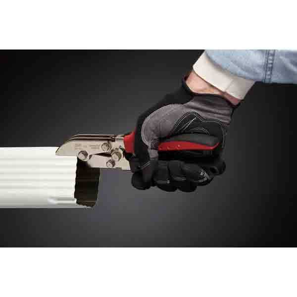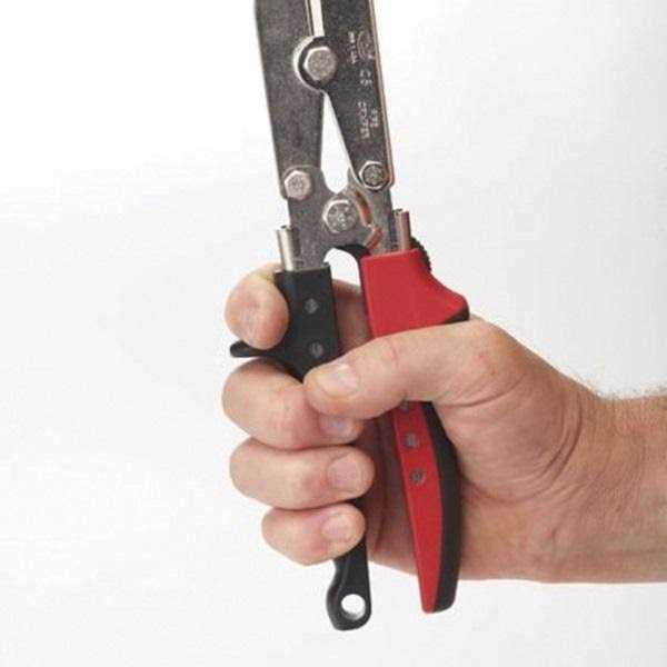 The blades produce 1-1/4 in long double crimps without causing deformation of downspout walls. A factory-like crimp ensures that the downspout walls stay square for a tight fitting, leak-proof connection. A handle closing stop helps to maintain a consistent crimp profile. Made with hardened all-steel construction and a nickel chrome finish, you can assure this tool will last a long time. Added power and comfort is also achieved with RedLine Handle technology. The handle opening of the Gutter Crimper compliments the natural power stroke of any user’s hand and maximizes the powerful 7: 1 mechanical advantage of compound-leverage head to handle linkage. Every handle is made with non-slip grip inserts, comfortable Handle grip contours, spring handle actuation and a thumb-operated handle latch. All of these qualities ensure a natural fit and feel for comfortable one hand operation.
