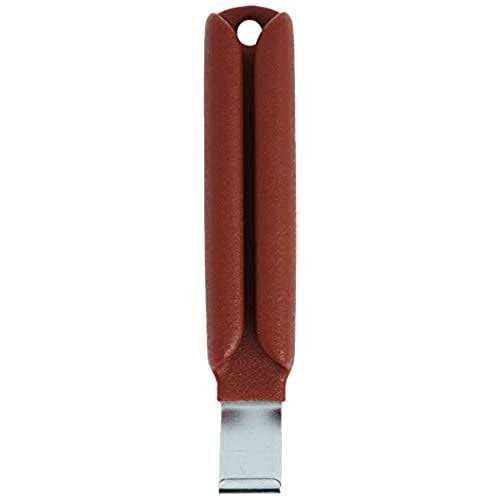 SideSwiper model SRT2 combines the comfort and added leverage of an easy-to-grasp straight handle with the smooth unlocking motion of a burr free hook. The blade of the SRT2 is angled from the bottom plane of the handle and allows the user to keep the wrist straight while keeping knuckles well above the work. Blade surface finishing and plating ensures that the sharply angled hook will not cut into the vinyl material or produce shavings. Additional comfort and control is achieved with a non-slip textured handle grip. The gripping surface will not become slick from moisture and the form fitting plastisol dip process bonds the grip for the life of the tool. Durable one piece spring steel construction is virtually indestructible. A handy oversize hang hole in handle accommodates a 1/4″ (6.4 mm) peg hook.