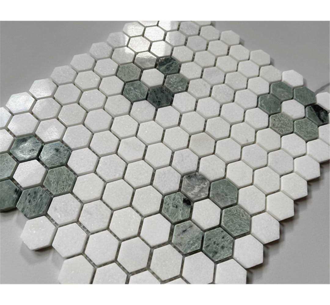 Marble Online Ming Green Thassos White Rosette Marble Hexagon Mosaic Tile