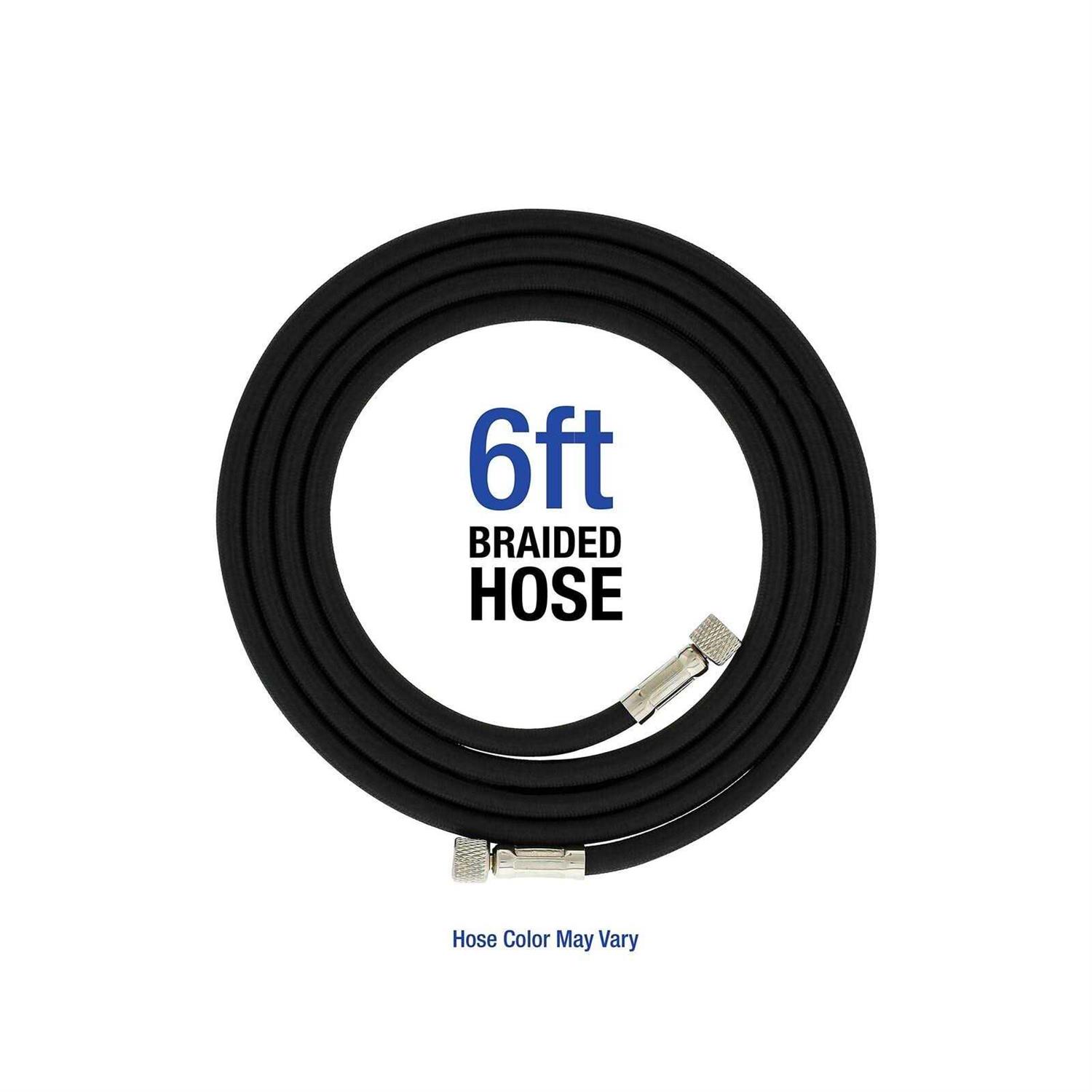 - 5′ Braided Air hose with Quick Disconnect and Air flow Adjustment Valve.