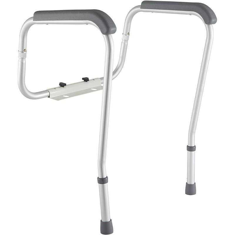 This Toilet Safety Rail provides additional safety and security when you sit down on or stand up from the toilet. Anodized aluminum alloy construction, lightweight and sturdy, is corrosion and rust resistant. Height and width can be adjusted for customized fit. It supports up to 374.8lbs weight and fits for standard toilet with 5 1/2″hole pitch.