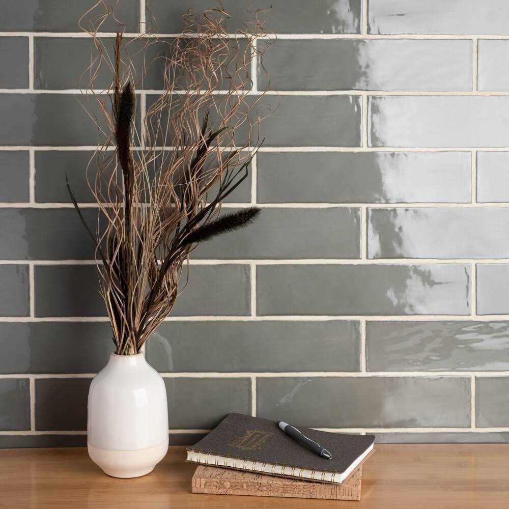 - Grey 3-in x 12-in Glossy Ceramic Subway Wall Tile Sample