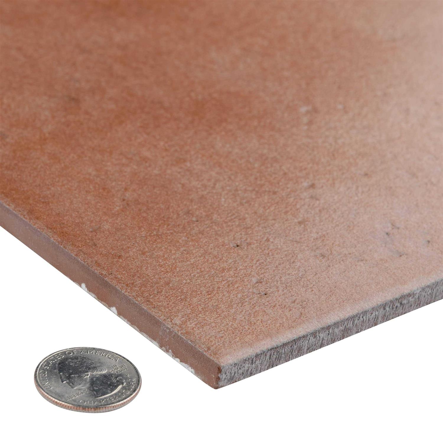 Our Elite Cuero Matte 13” x 13” brings a sense of visual warmth and comfort into any space. Mimicking a worn cement appearance, this square tile features faded terracotta color tones and a matte finish. With a slightly textured surface, this ceramic tile offers charming, rustic beauty through realistic scuffs and spots that are the marks of well-loved, worn, century-old tile. Available in infinite distressing variations that are randomly distributed throughout each case, the variation throughout each tile creates a truly authentic aged appearance. Its glazed and durable features make it an ideal choice for indoor floor and wall installations including kitchens, bathrooms, backsplashes, showers and entryways. Tile is the better choice for your space. This tile is made from natural ingredients, making it a healthy choice as it is free from allergens, VOCs, formaldehyde and PVC.
