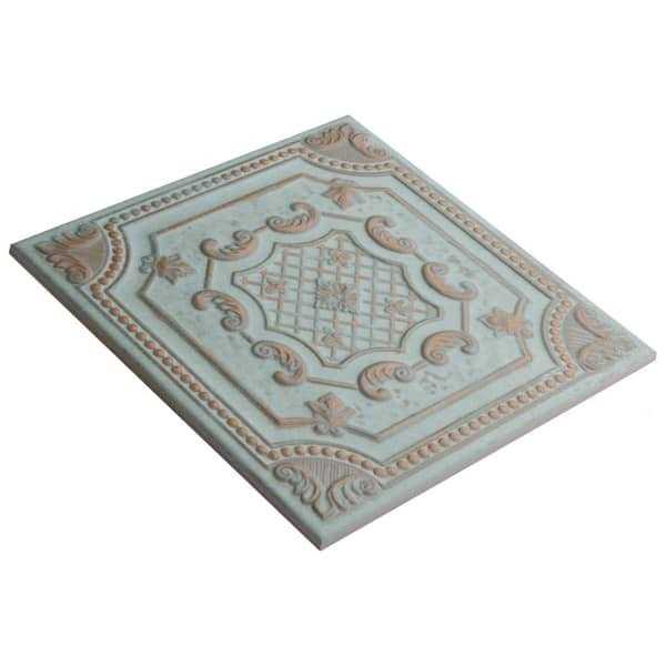 Reminiscent of antique tin ceiling tiles, our Fitz Green Ceramic wall tile offers authentic vintage appeal. This decorative square tile features embossed old-world motifs in seafoam green and rust color tones with splashes of glossy glazing. With a textured, mixed finish surface, this ceramic tile can blend into virtually any design theme, ranging from contemporary projects to traditional installation. Available in 40 print variations that are randomly scattered throughout Case, the variation throughout each tile mimics an authentic aged appearance. Its glazed feature makes it an ideal choice for indoor wall installations including kitchen backsplashes, bathroom showers, and fireplace facades. Tile is the better choice for your space. This tile is made from natural ingredients, making it a healthy choice as it is free from allergens, VOCs, formaldehyde, and PVC.