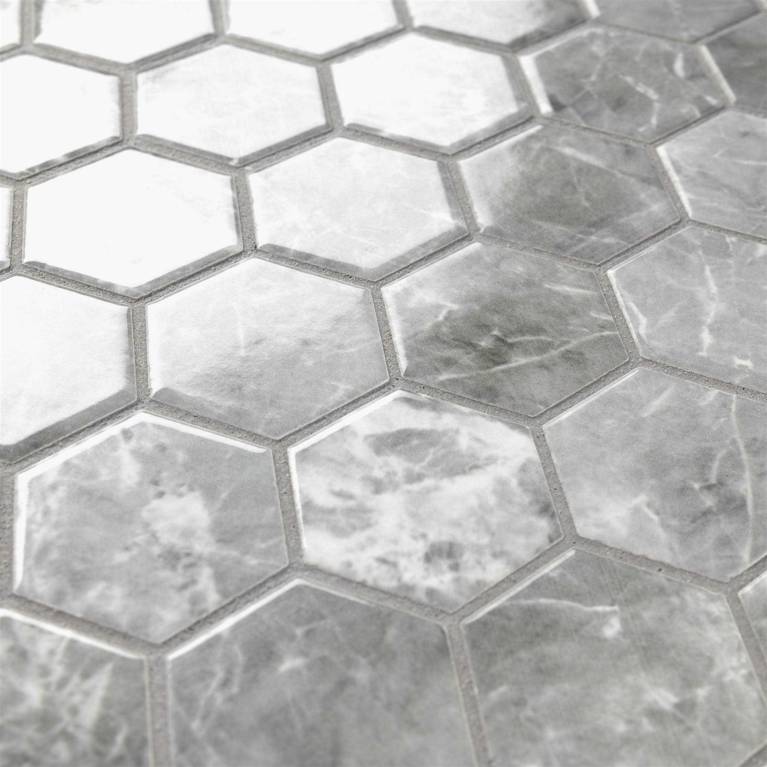 This Open Box item has been inspected by our team. No physical flaws, scratches or scuffs. 10.0 square feet, 10 pieces per case. Case weight is 25.35 lbs. Grade 1, first-quality porcelain tile for floor and wall use. 11.13 in. width x 12.63 in. length x 0.27 in. thick mesh-mounted mosaic. Glazed, smooth finish with a high sheen and random variation in tone. “”Ideal floor and wall tile choice for backsplashes fireplace facades kitchens and showers”” “”Indoor and outdoor use; Made in Thailand”” “”Gray hexagon porcelain floor and wall tile”” smooth finish with a high sheen and random variation in tone”” “”This is a tile sample each sample sold individually”””