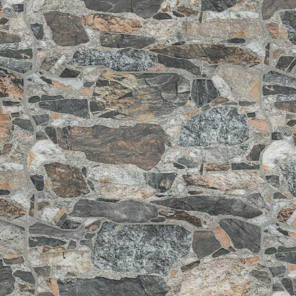 Amble mica porcelain floor and wall tile is a new take on a stone-look tile that combines the rustic look of natural stone with a classic porcelain material. Its unique shape creates a more natural room look with a grout line that blends seamlessly. This tile resembles natural stone with shades of Beige taupe brown terra cotta black and Gray that varies throughout and between pieces. Use this interlocking tile in indoor or outdoor locations that could use a natural touch.