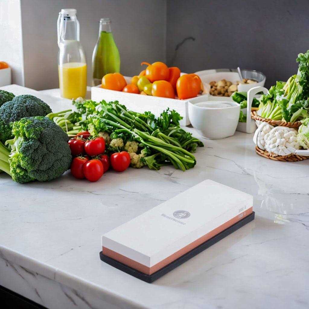 The Messermeister 1000/3000 Grit Water Stone is for regular use to keep your edges sharp factory sharp, and leaves a fine finish to the edge. Messermeister designed this stone for those who are interested in keeping a razor-like edge on their kitchen cutlery. The 1000 grit side is excellent for maintaining a very sharp edge. The 3000 grit side is great for finishing the sharpest edges with a polish. This stone provides a complete solution to maintaining the sharpest kitchen cutlery.
