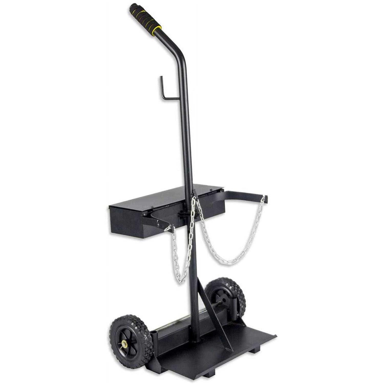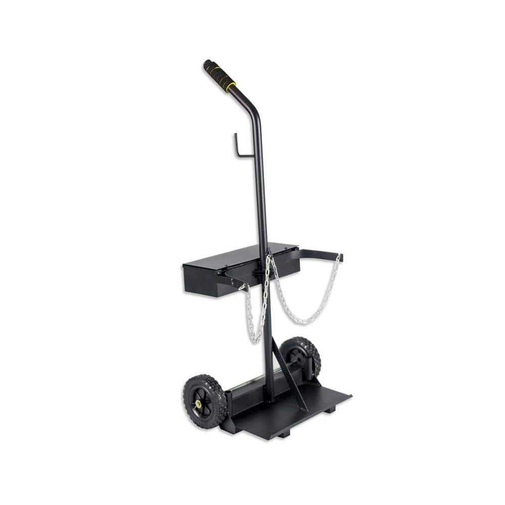 This small cylinder cart is easy to assemble and holds 8 in. acetylene and 7 in. oxygen cylinders. This cart features a single handle and 6 in. wheels that make it easy to maneuver. The handy storage box has a cover to keep all your tools and supplies out of the weather.