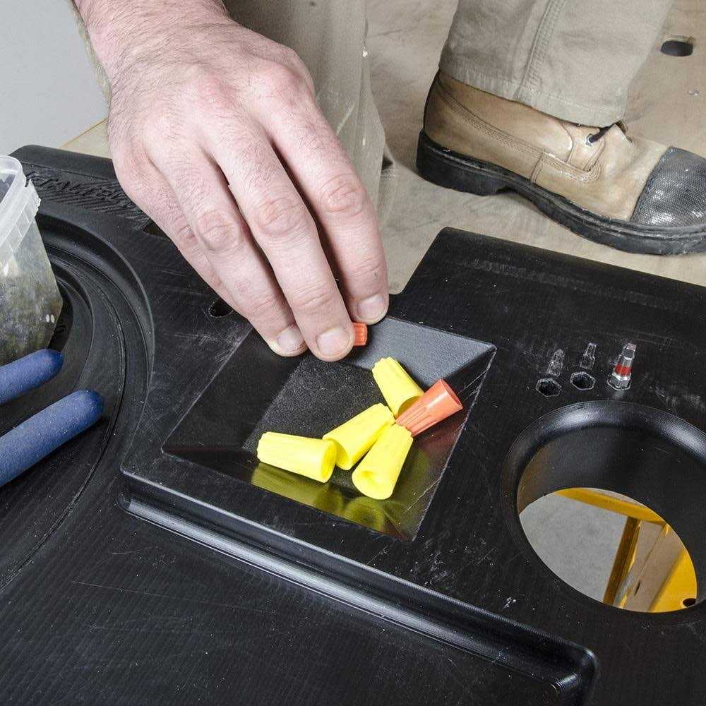 • Sports large integrated cups, easy-grab corners, and its center area is recessed to fit paint cans for construction work.