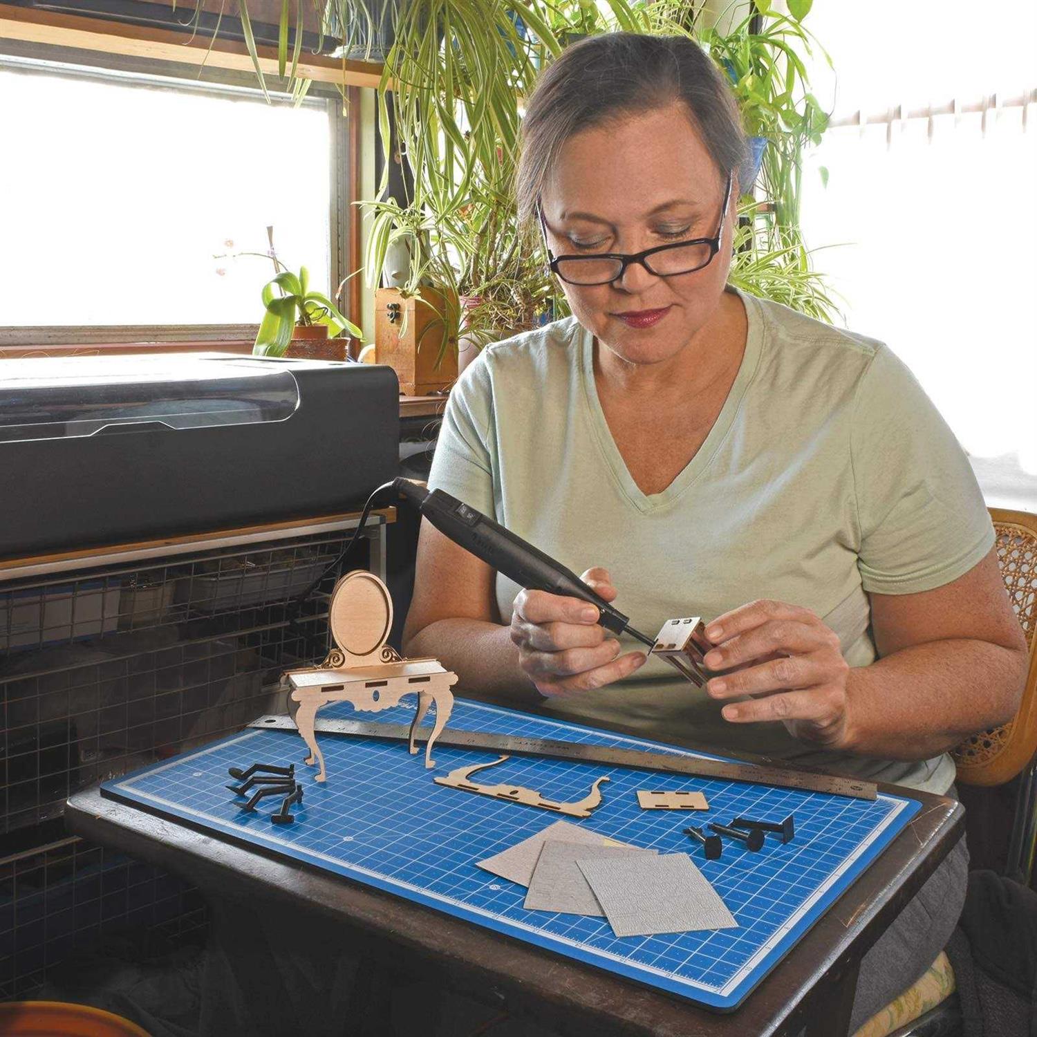 The MicroLux Micro Sander, a versatile detail sander, offers precision and power in a compact, lightweight design for flawless results delivers exceptional performance Experience the convenience of a mini sander that excels in small projects and intricate work, providing precise control and effortless maneuverability. With its quick exchange bits and corner-sanding capabilities, the MicroLux Micro Sander ensures precision sanding even in the tightest corners it works brilliantly. The Micromark MicroLux Micro Sander delivers exceptional performance with 7000 strokes per second, making sanding on various surfaces efficient and effortless. Achieve professional finishes with ease using the MicroLux Micro Sander’s fine electric sanding capabilities, perfect for achieving the desired thickness in your projects.