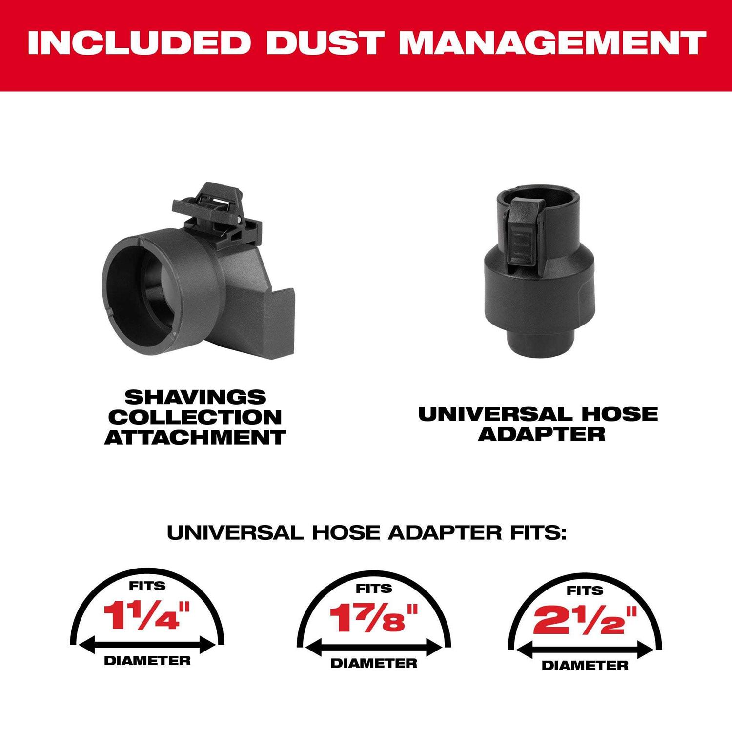 Designed for the finish carpenter and remodeler our M12 brushless 2″ planer provides the power to plane and scribe in soft and hardwoods in a compact design. The M12 brushless 2″ planer has the power to remove up to 5/64ths in a single pass. The dual-sided shavings port allows users to direct shavings to either side of the tool improving ease of use and productivity. This lightweight and compact planer uses a 2″ wide shoe which is optimized for common applications such as scribing and planing doors. With 14 500 RPMs and 2 blades on the cutter head the M12 brushless 2″ planer delivers a smooth surface finish. With 21 depth settings ranging from 0 to 5/64ths users have the ability to make precise accurate cuts. The lockable kickstand allows users to store the kickstand away to avoid interference with the workpiece.