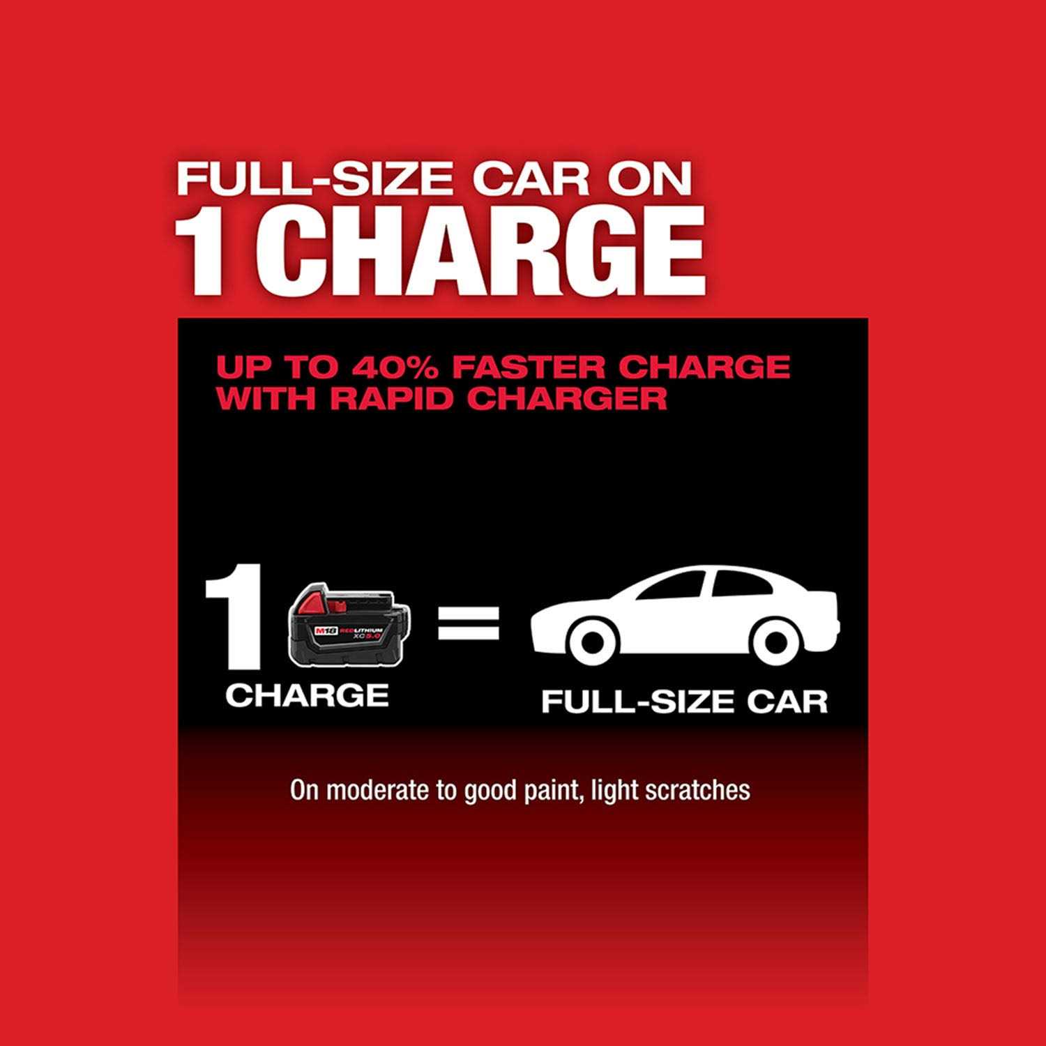 The M18 FUEL 7 in. variable speed polisher is the world’s first cordless full-size rotary polisher. By harnessing the power, performance and run-time of M18 FUEL technology, this tool delivers corded performance that allows users to power through the most demanding applications. At more than 1 lb lighter than corded, and the ability to deliver total control through a variable speed dial and trigger, the new M18 FUEL polisher frees users from the extra work, distractions, paint damage, and inconvenience caused by cords. Paired with M18 XC5.0 batteries, the M18 FUEL polisher can complete a full size car on one charge when working on moderate to good paint. The M18 FUEL polisher is equipped with a rubber over mold front housing to protect the paint from scratches in use as well as a removable dust cover to protect the motor and electronics from wool fibers and residue. The new tool is designed to distribute more of its weight over the pad, providing natural pressure on the surface area and more comfort to the user while polishing.